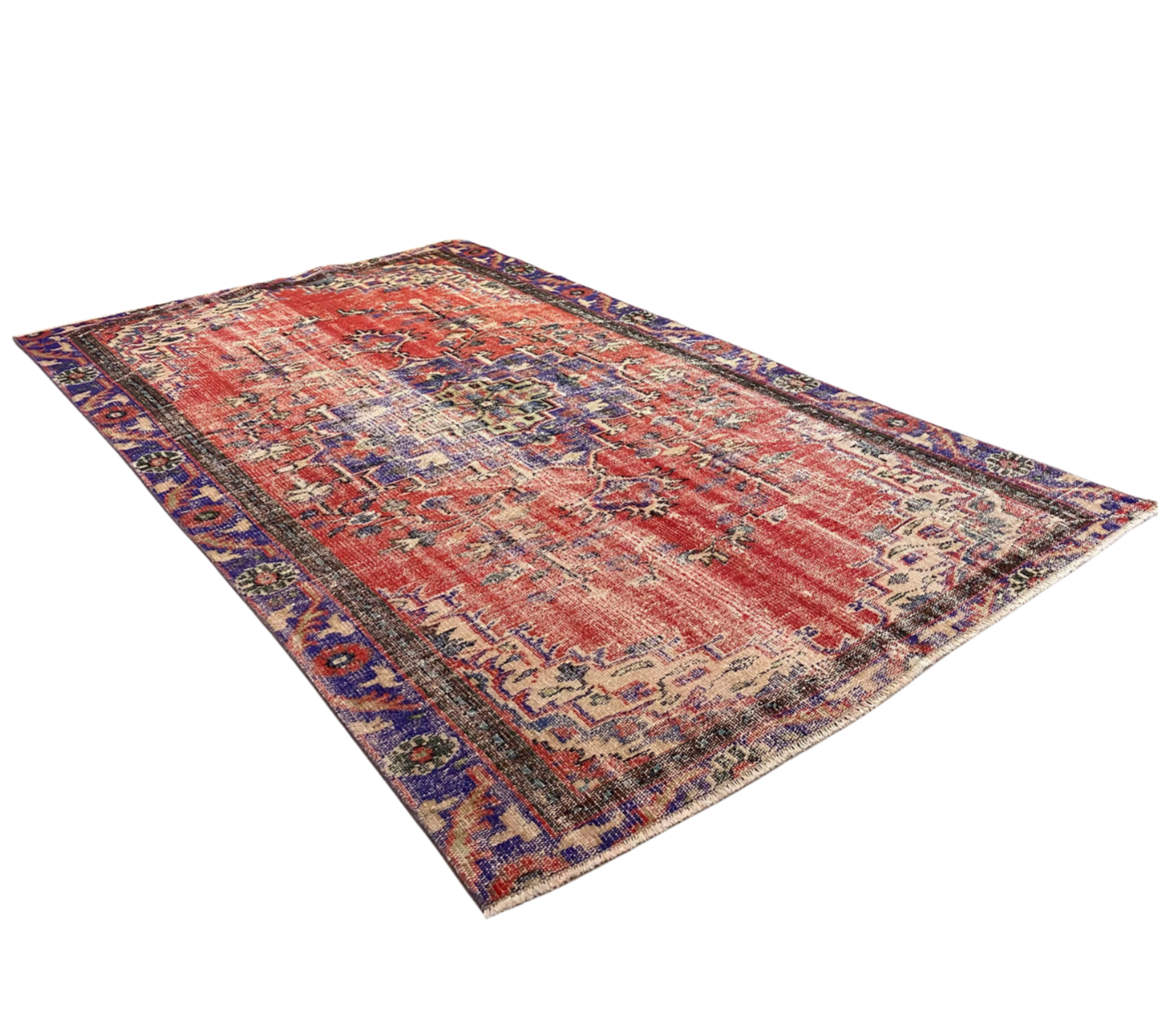 ペルシャ絨毯のスタイルをまとったヴィンテージラグは、高品質なウールとコットンの天然素材を使用したヴィンテージラグは、オリジナルデザインをそのままに、丁寧にクリーニングとトリミングを施しています。質感と風合いを楽しみながら、長くご愛用いただける一枚です。