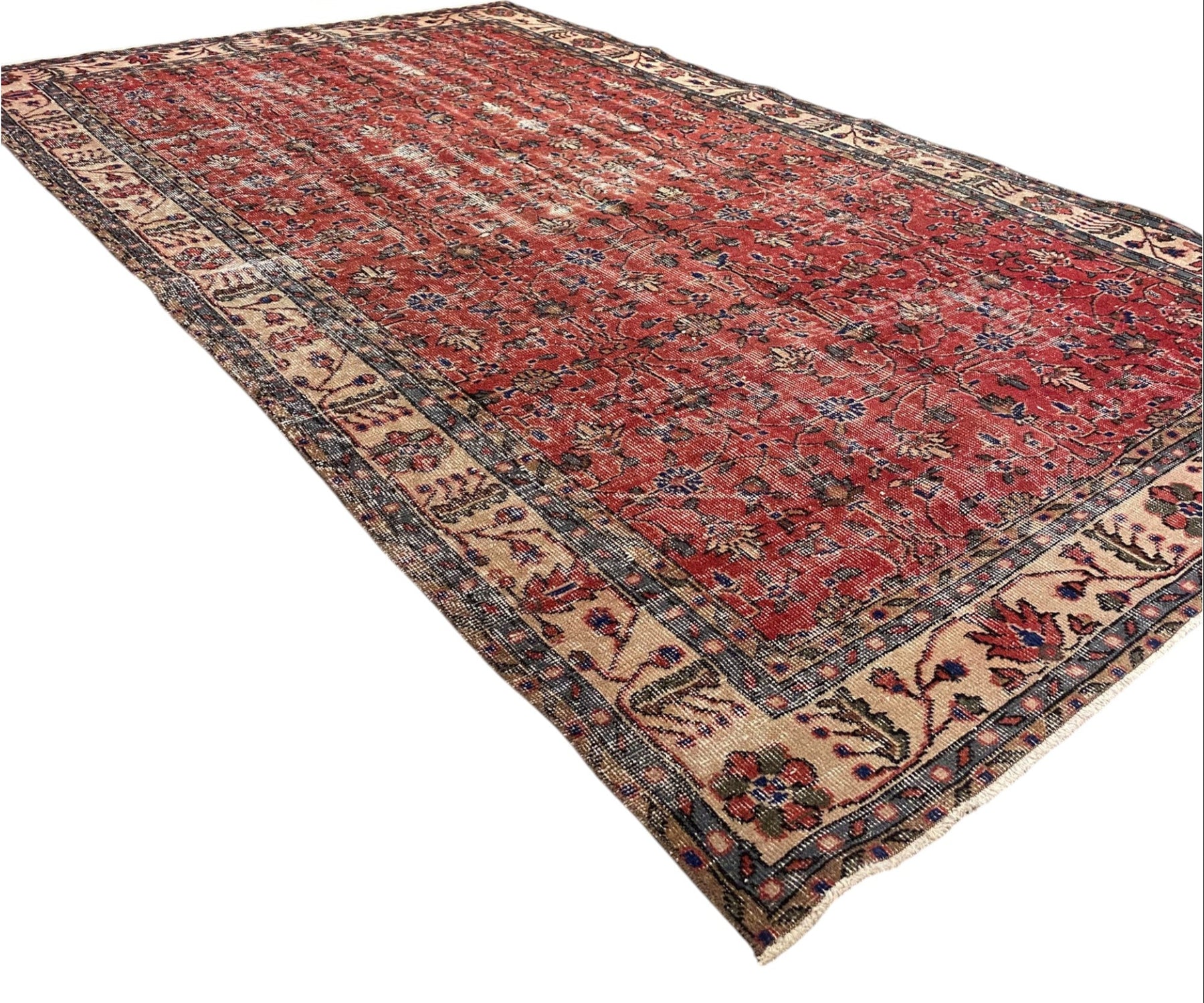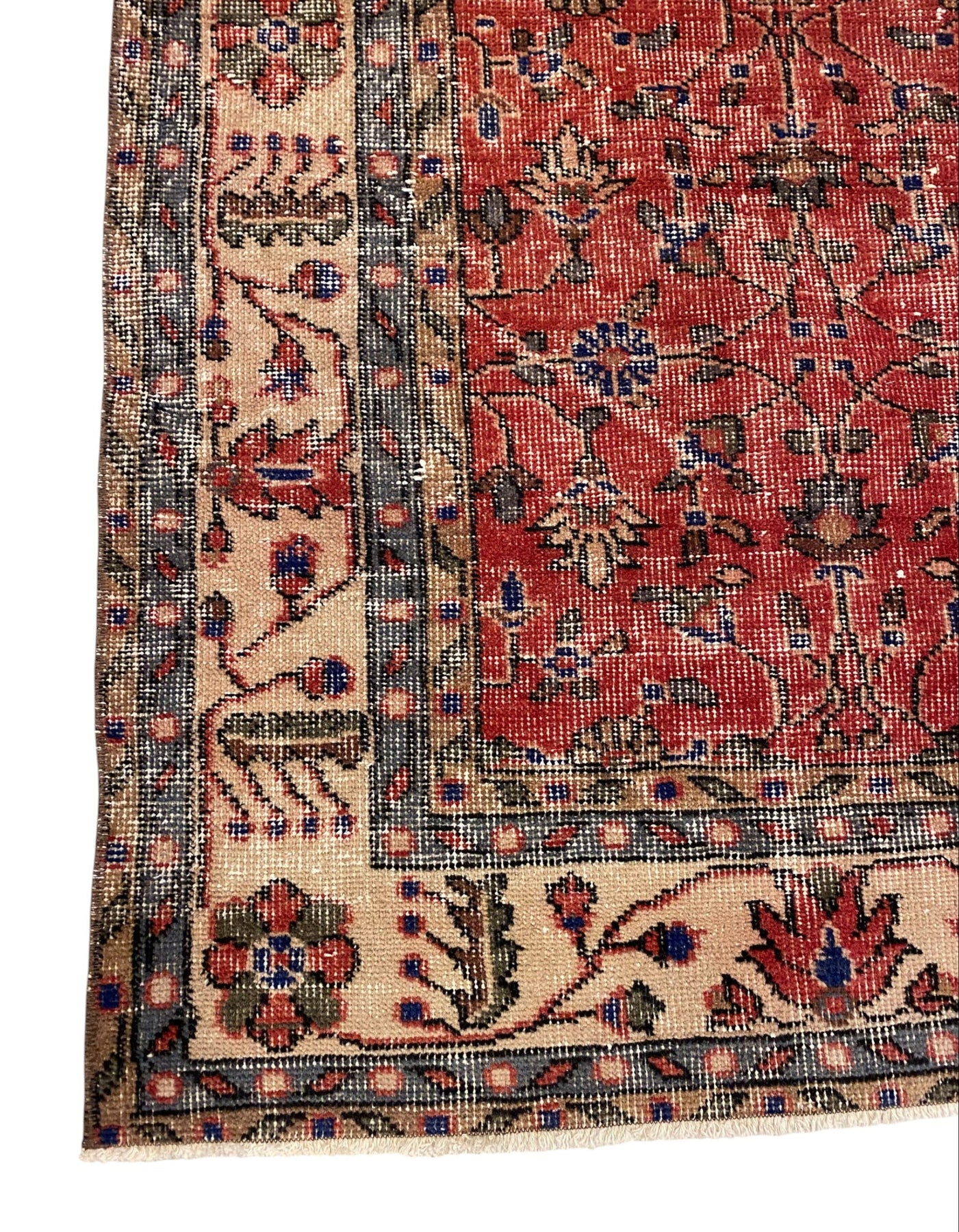 ペルシャ絨毯のスタイルをまとったヴィンテージラグは、高品質なウールとコットンの天然素材を使用したヴィンテージラグは、オリジナルデザインをそのままに、丁寧にクリーニングとトリミングを施しています。質感と風合いを楽しみながら、長くご愛用いただける一枚です。