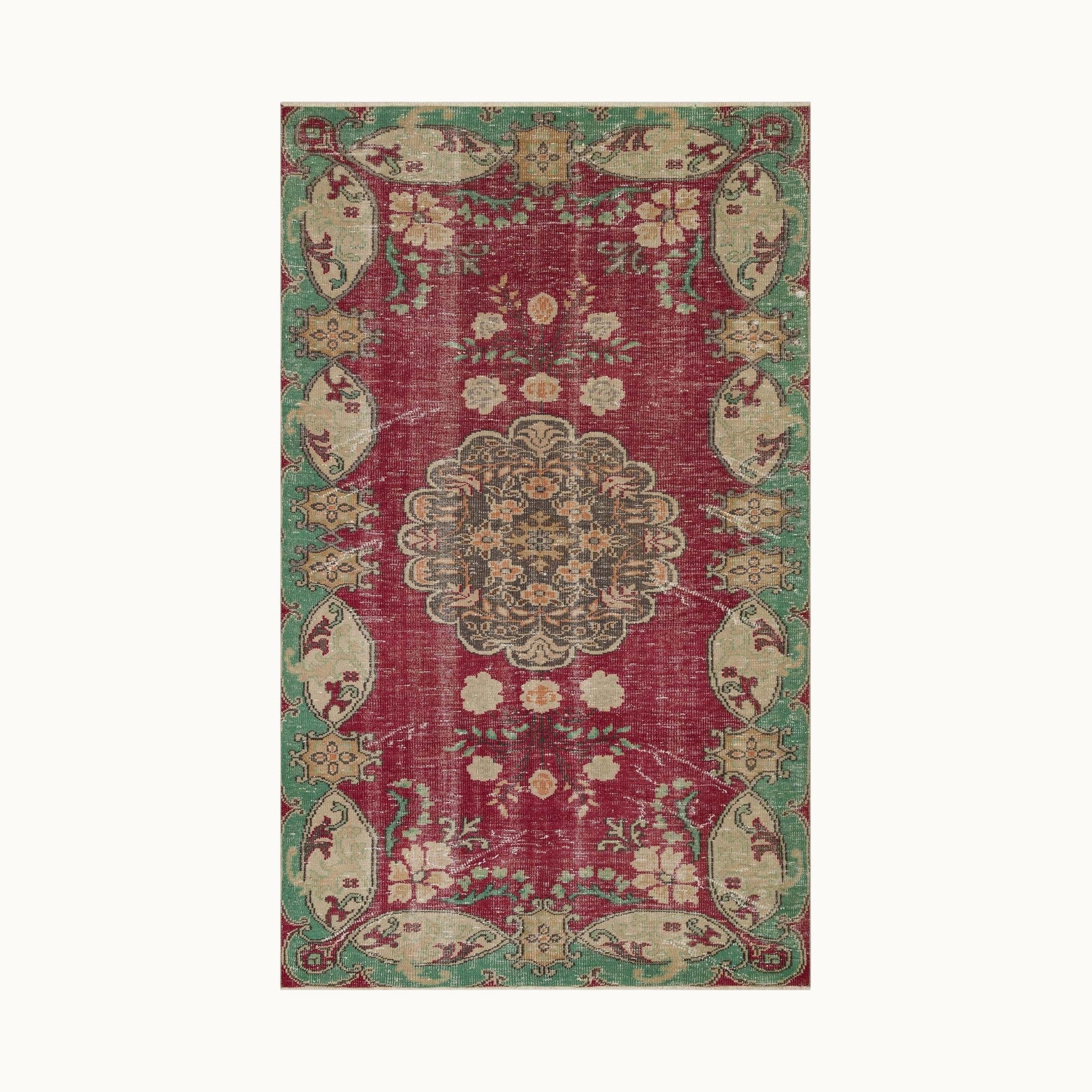 ペルシャ絨毯のスタイルをまとったヴィンテージラグは、高品質なウールとコットンの天然素材を使用したヴィンテージラグは、オリジナルデザインをそのままに、丁寧にクリーニングとトリミングを施しています。質感と風合いを楽しみながら、長くご愛用いただける一枚です。