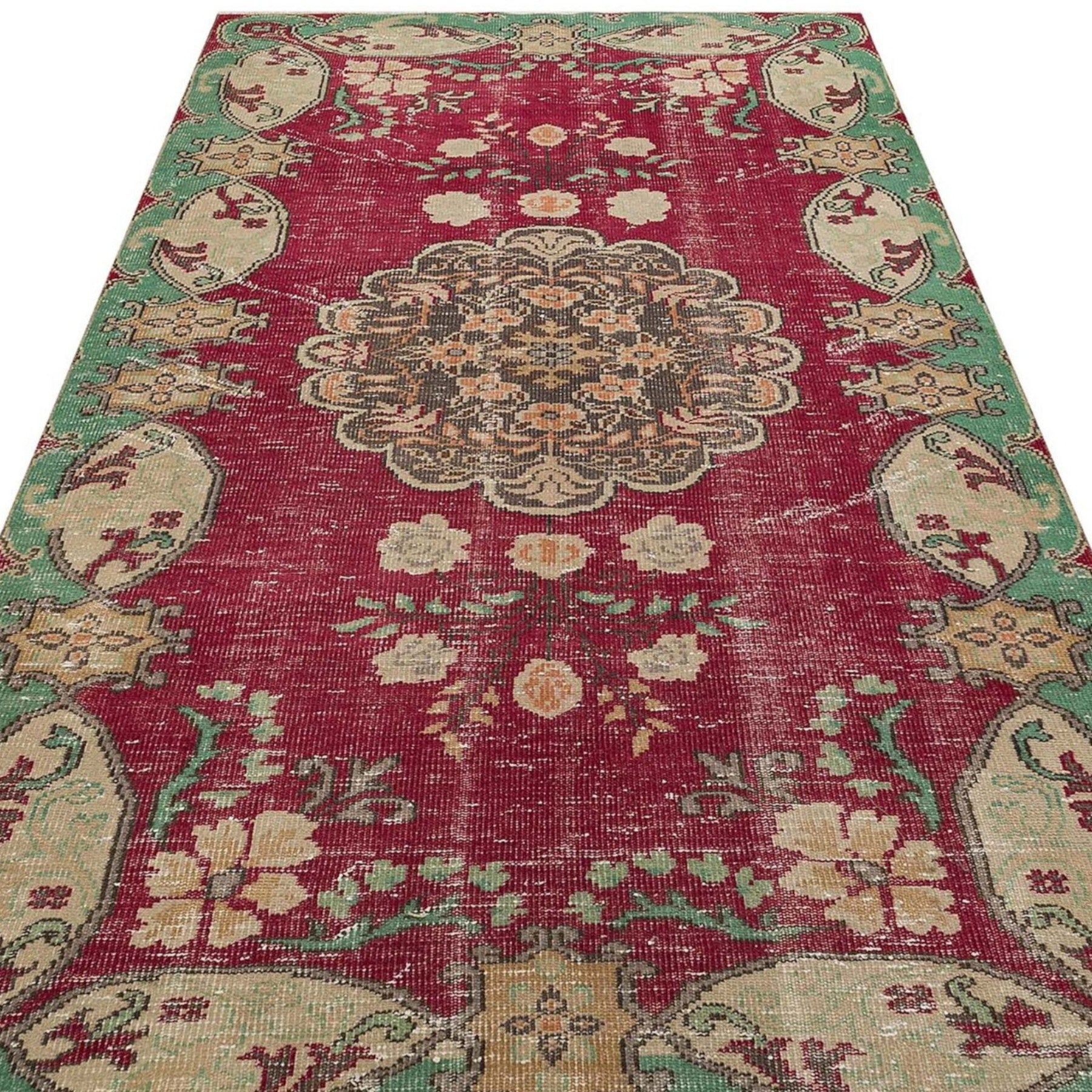 1980年代以前にトルコのアナトリア地方で織られた、世界に1枚だけのトライバルラグ。伝統的な技法で4-6ヶ月かけて職人によって手織りされたものです。このシリーズは1枚1枚異なるデザインながら当時量産されたもので、流通量が多いためヴィンテージラグの割にお手頃です。