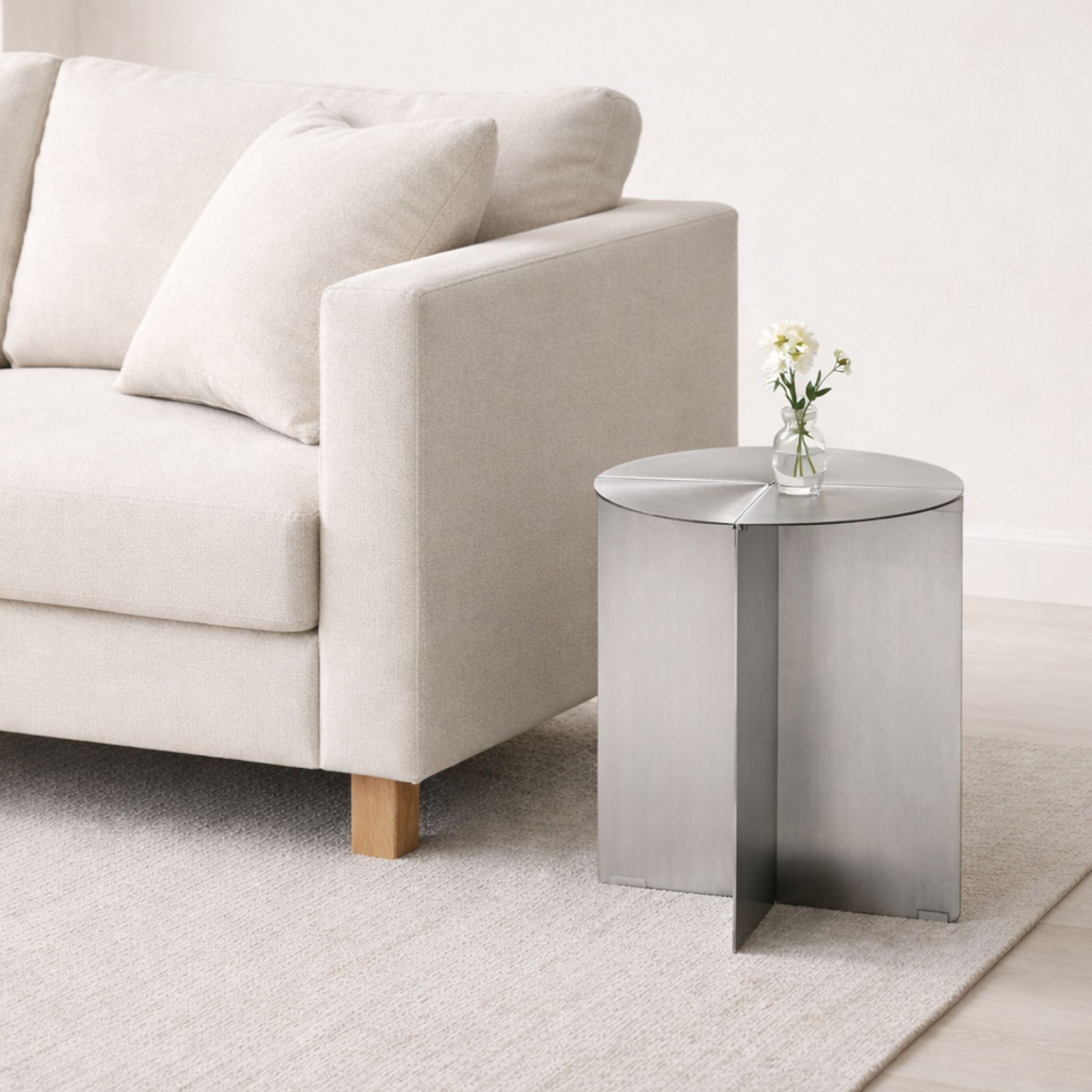 すっきりとした佇まいで空間を整えるステンレスサイドテーブル。
