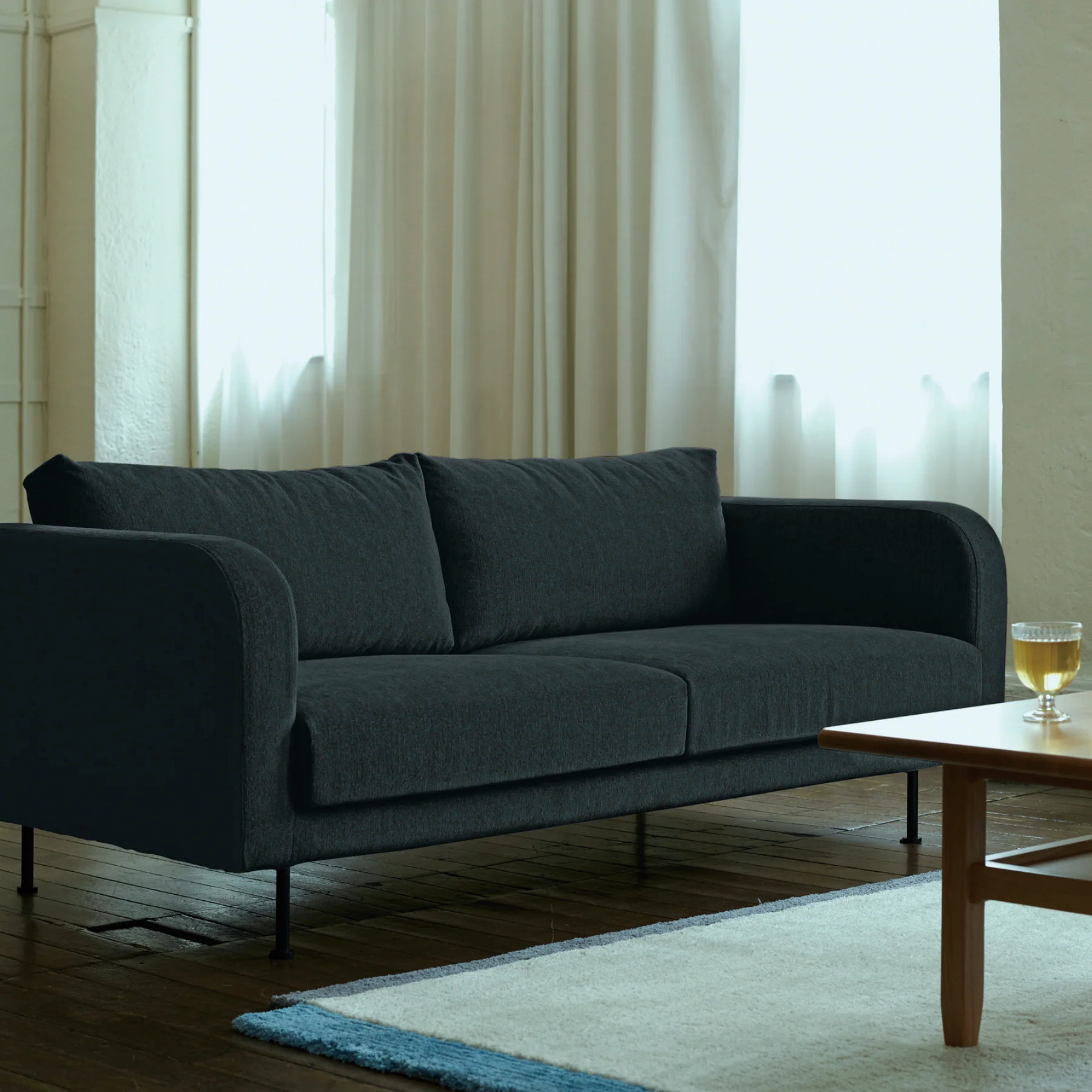 ボリュームのある丸みを帯びたフォルムが、柔らかな存在感を放つ2人掛けソファです。しっかりとした座り心地のウレタンフォームと、ふんわりとしたフェザー入りの背クッションを組み合わせ、贅沢な座り心地をお楽しみいただけます。