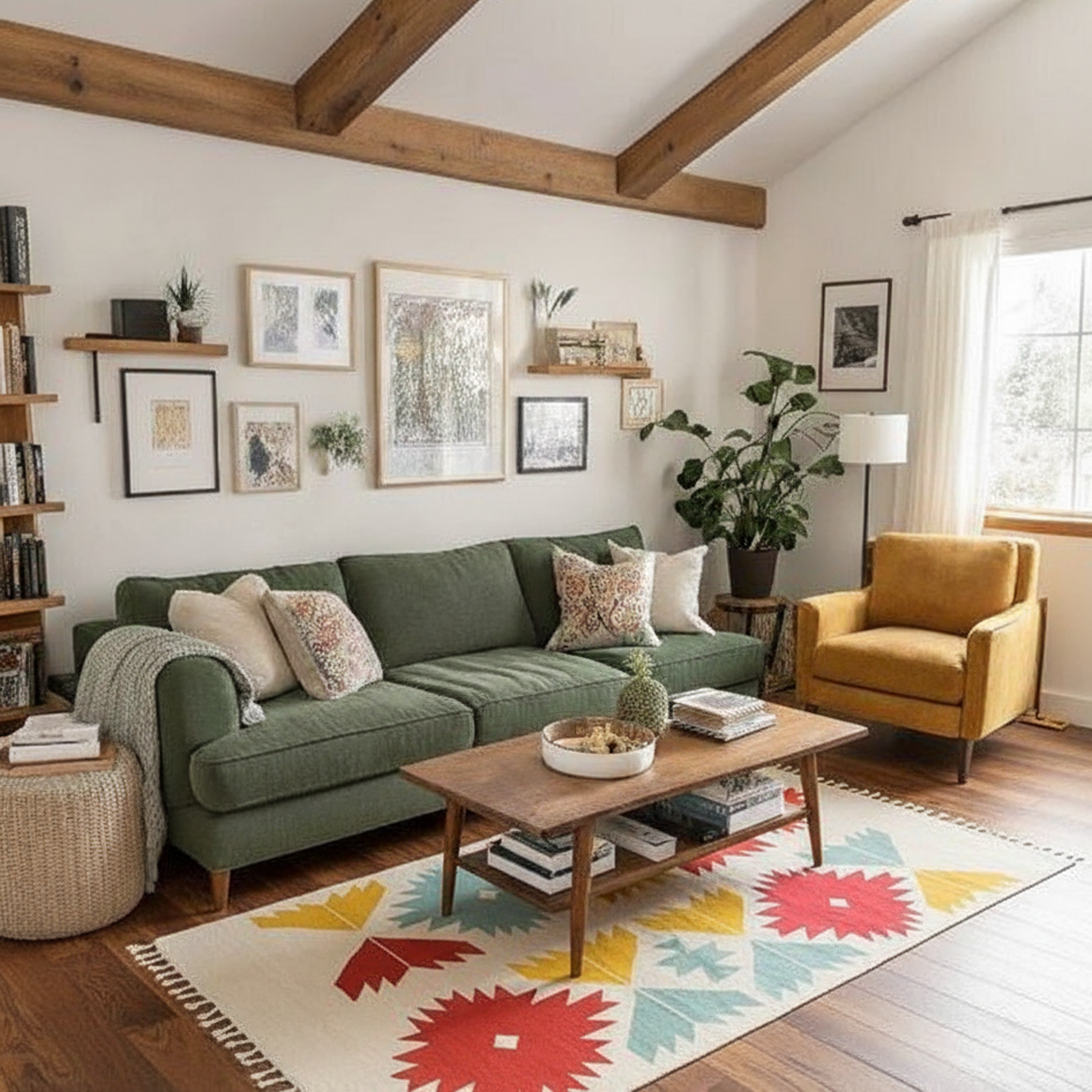 幾何学的なデザインが、シンプルで素朴なキリムにモダンさを加えています。