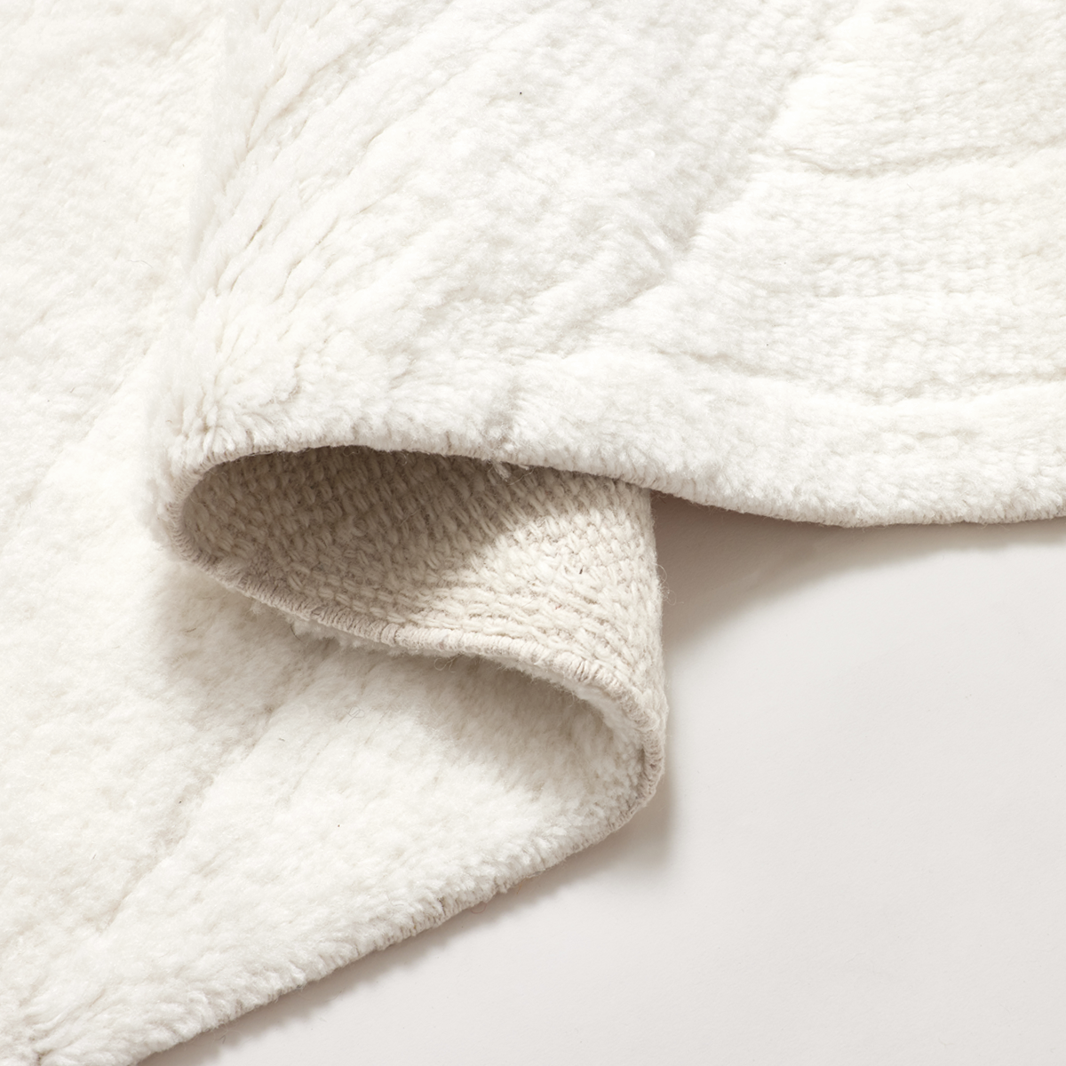 高品質のニュージーランド産ピュアウールを使用し、柔らかなタッチと心地よい踏み心地を実現しました。ハードウォッシュ仕上げでウールパイルがふんわりと開き、より一層しっとりとした肌触りに。