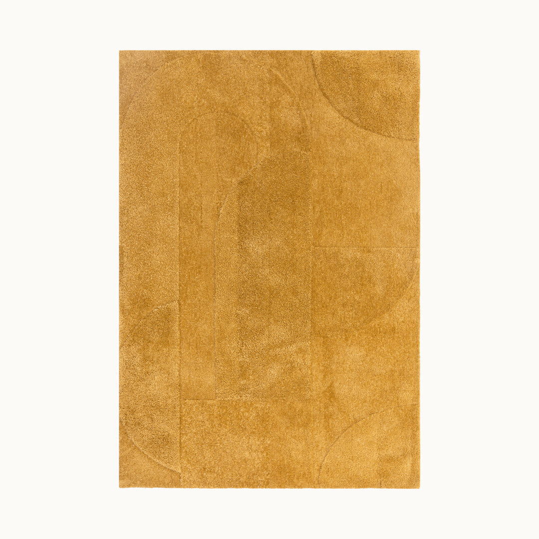 アーシーなオークルカラーの色合いがモダンで個性的なアートラグ。あらゆる空間を明るく開放的なトーンにします。