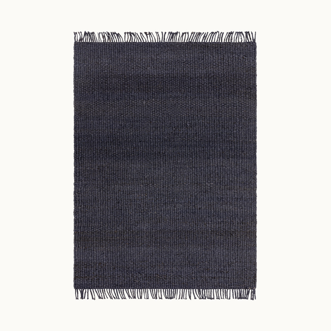 200x290cm大きめサイズのデニムのようなネイビーの色合いとざっくりとしたナチュラルな風合いが素敵なRUGHAUSの手織りリバーシブル天然エコ素材ジュート製ラグ