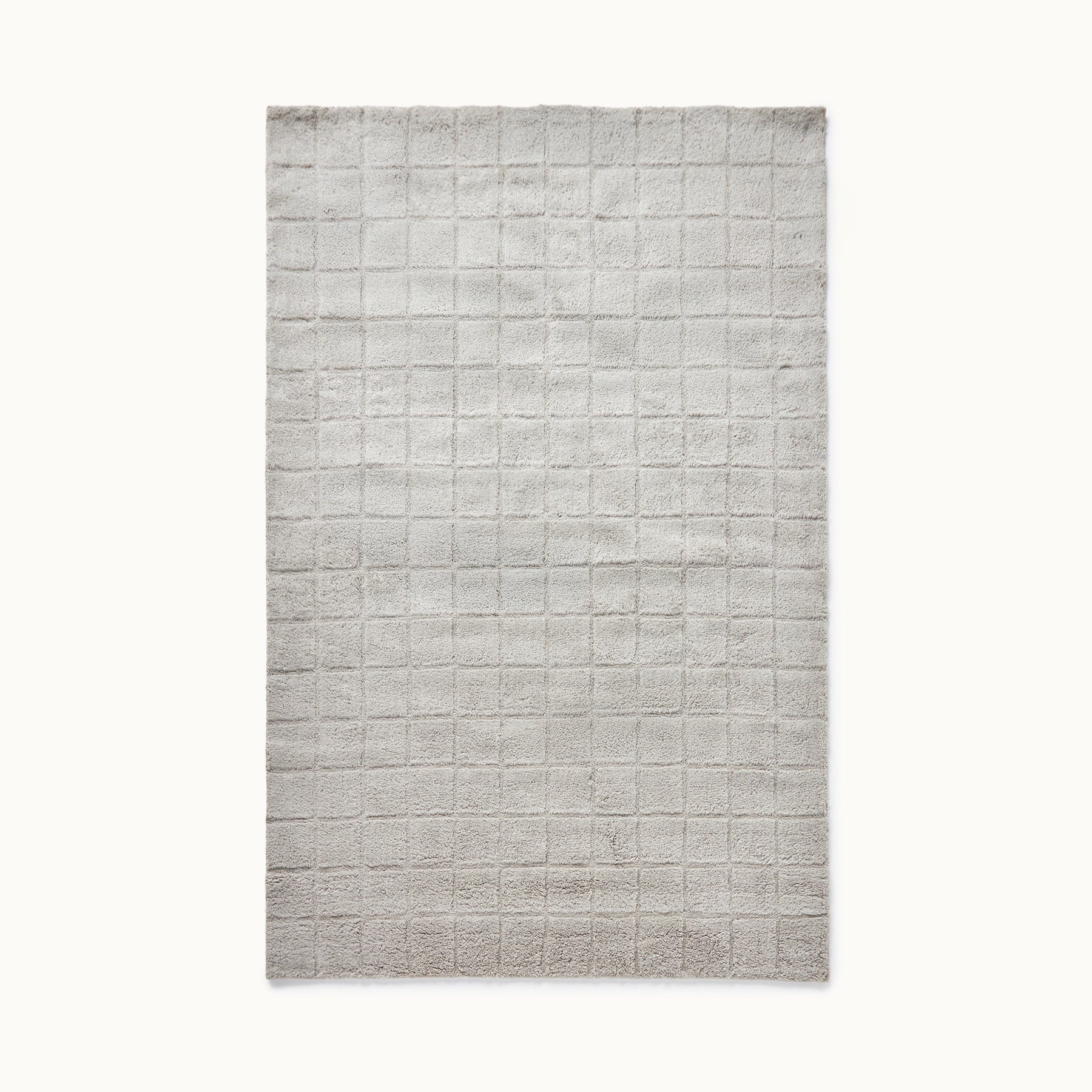 デザインは、単色の糸で描かれた規則正しいグリッドパターン。整った凹凸がもたらす知的な印象と秩序感が、空間にシャープなリズムを与えます。