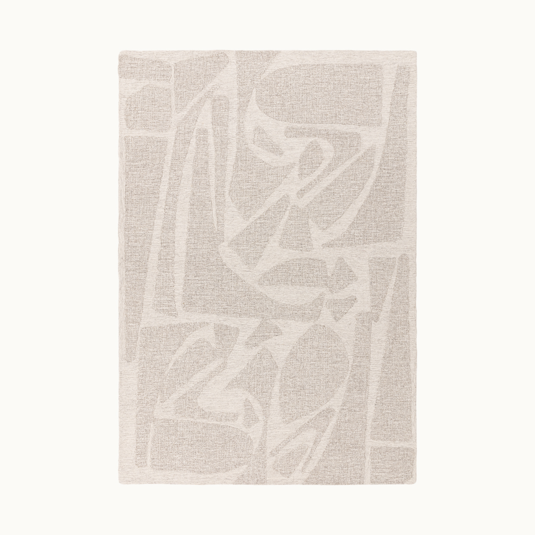 ナチュラルヤーン(原毛)の色合いや風合いを最大限に生かして、やわらかなモダンアートラグを織り上げました。