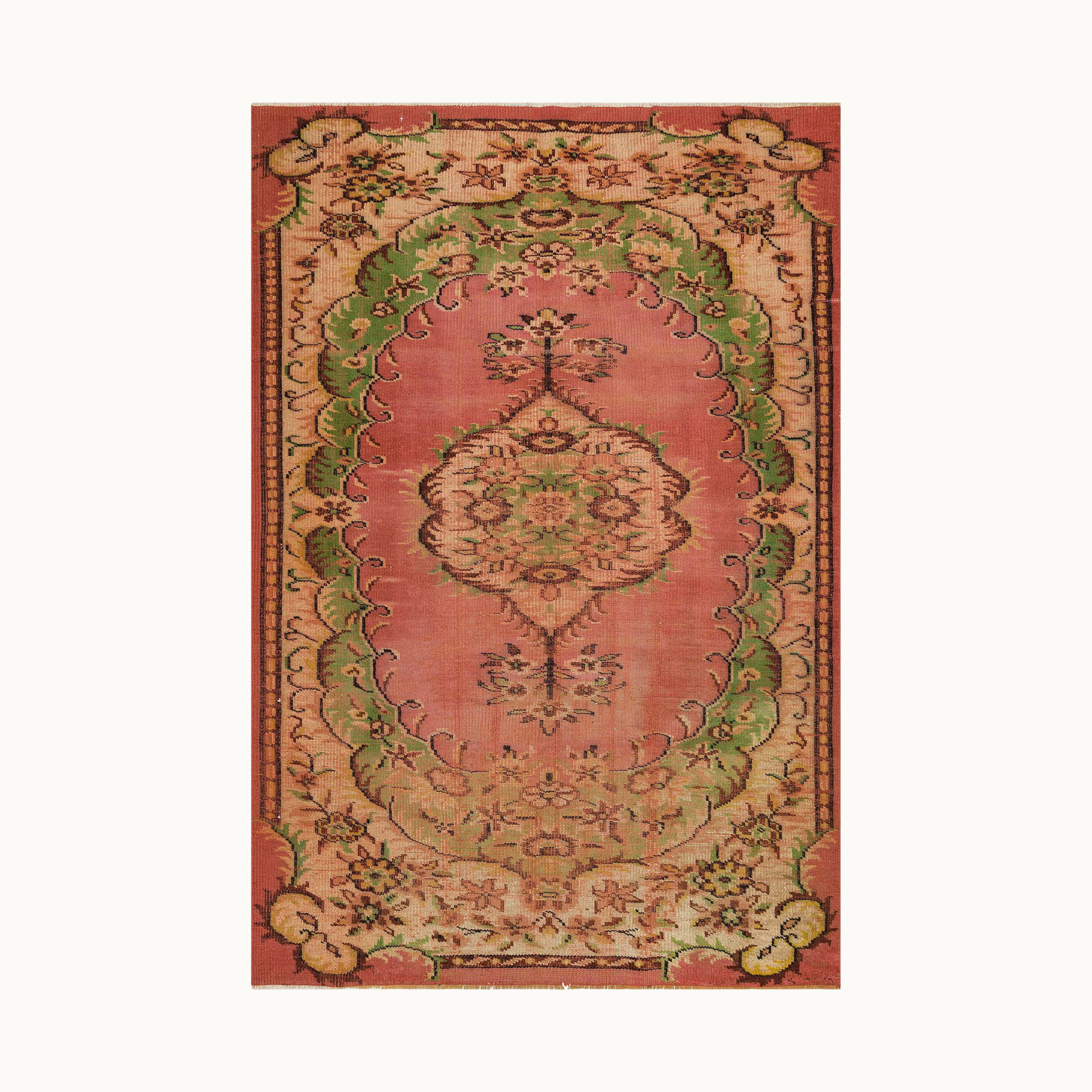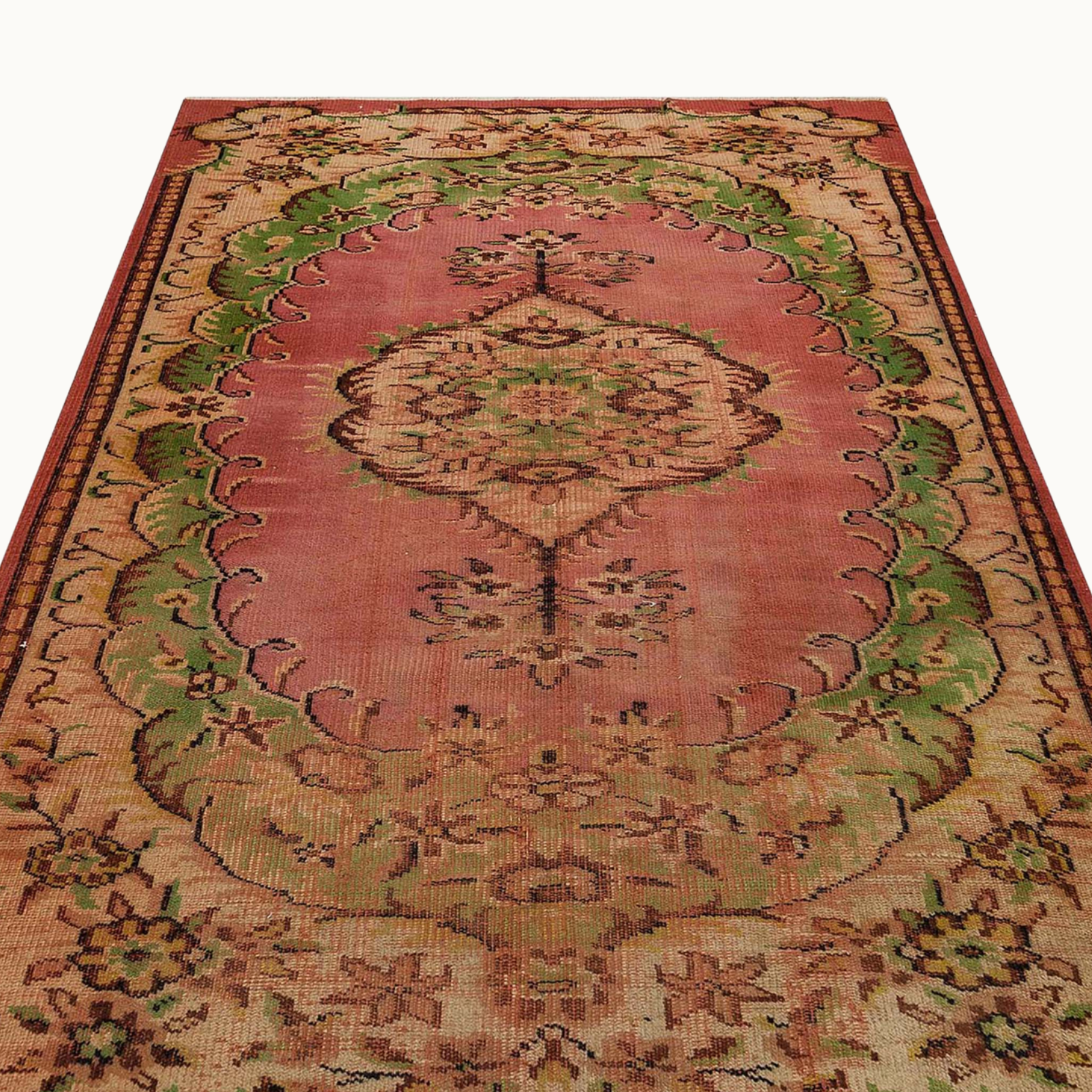 1980年代以前にトルコのアナトリア地方で織られた、世界に1枚だけのトライバルラグ。伝統的な技法で4-6ヶ月かけて職人によって手織りされたものです。このシリーズは1枚1枚異なるデザインながら当時量産されたもので、流通量が多いためヴィンテージラグの割にお手頃です。