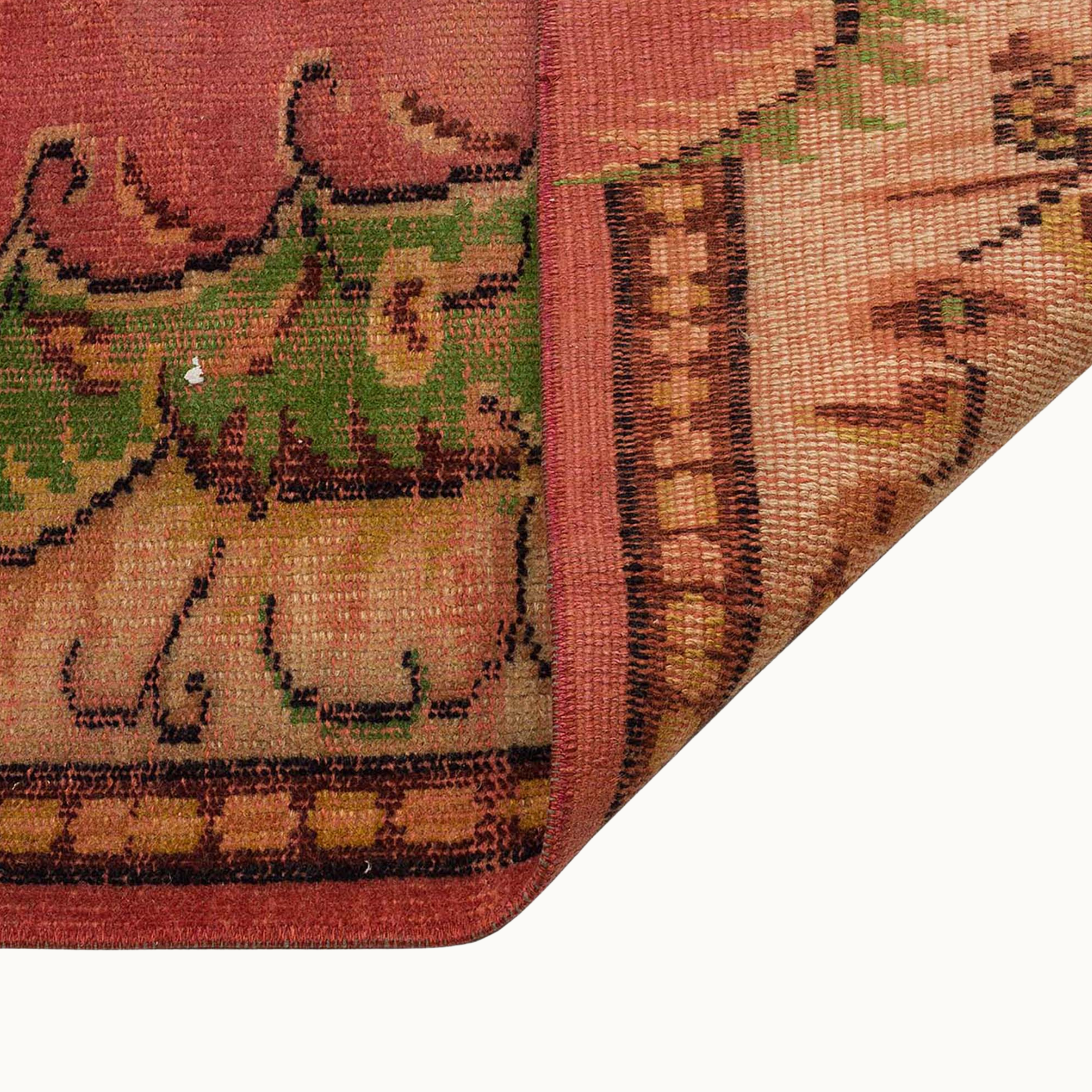 ペルシャ絨毯のスタイルをまとったヴィンテージラグは、高品質なウールとコットンの天然素材を使用したヴィンテージラグは、オリジナルデザインをそのままに、丁寧にクリーニングとトリミングを施しています。質感と風合いを楽しみながら、長くご愛用いただける一枚です。