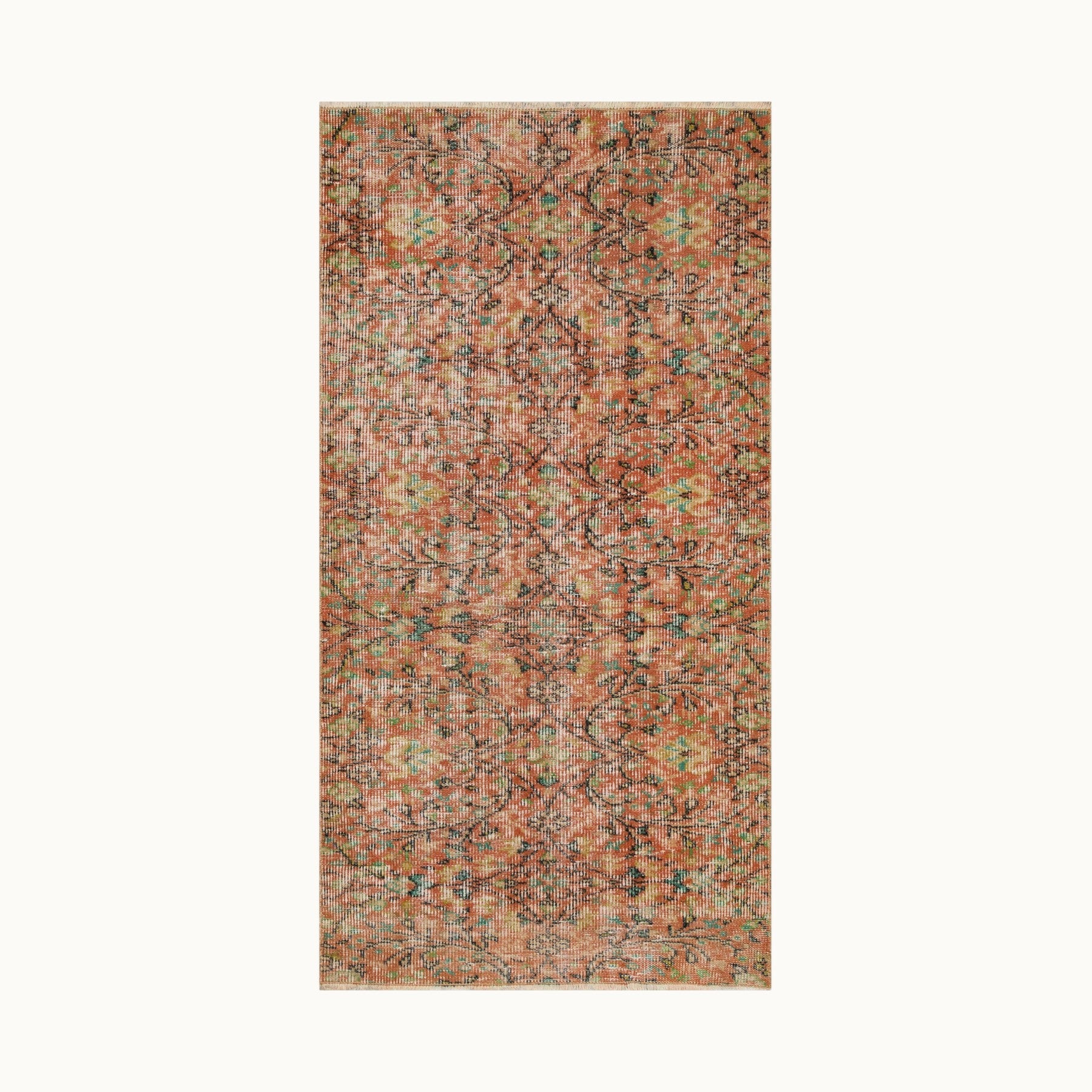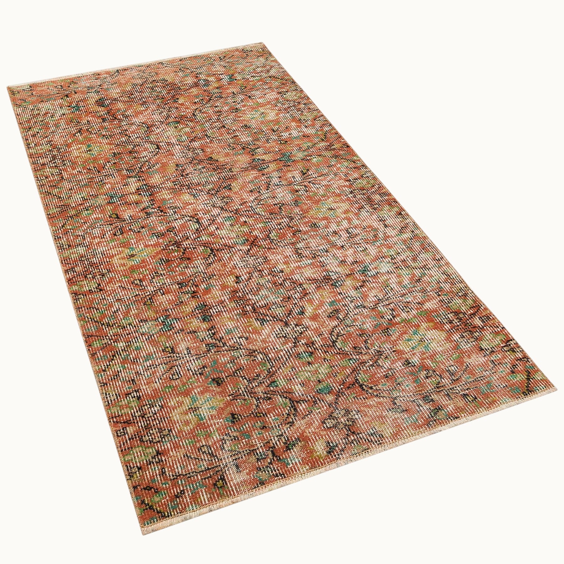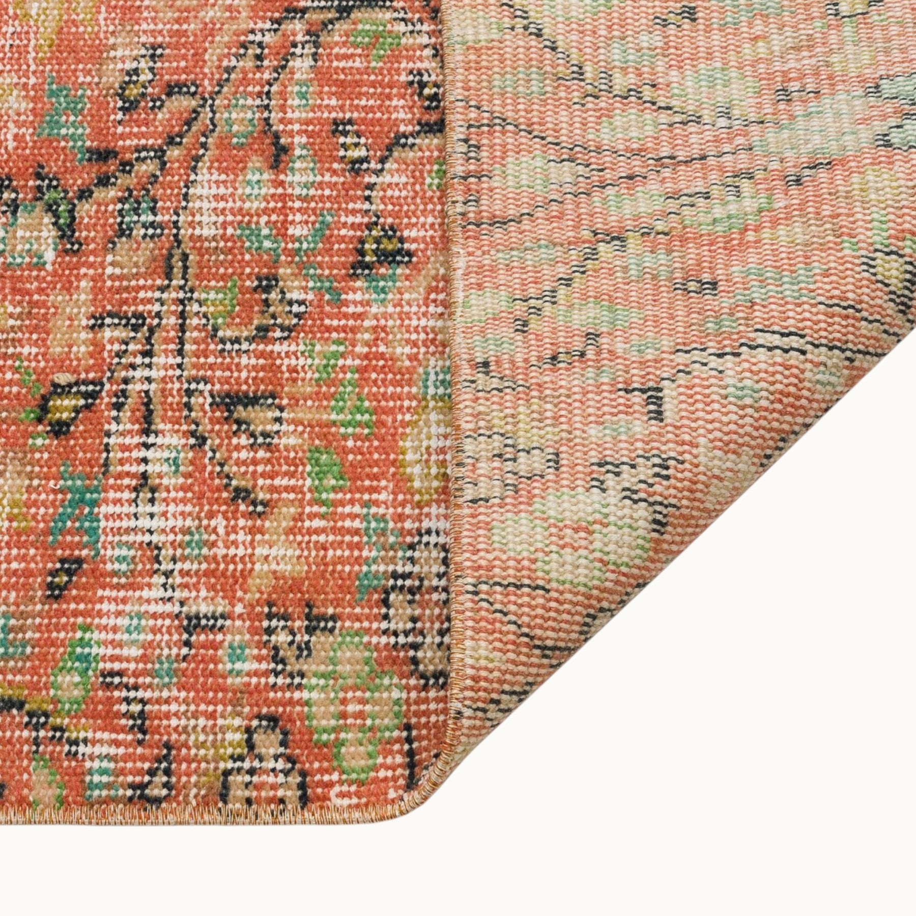 ペルシャ絨毯のスタイルをまとったヴィンテージラグは、高品質なウールとコットンの天然素材を使用したヴィンテージラグは、オリジナルデザインをそのままに、丁寧にクリーニングとトリミングを施しています。質感と風合いを楽しみながら、長くご愛用いただける一枚です。