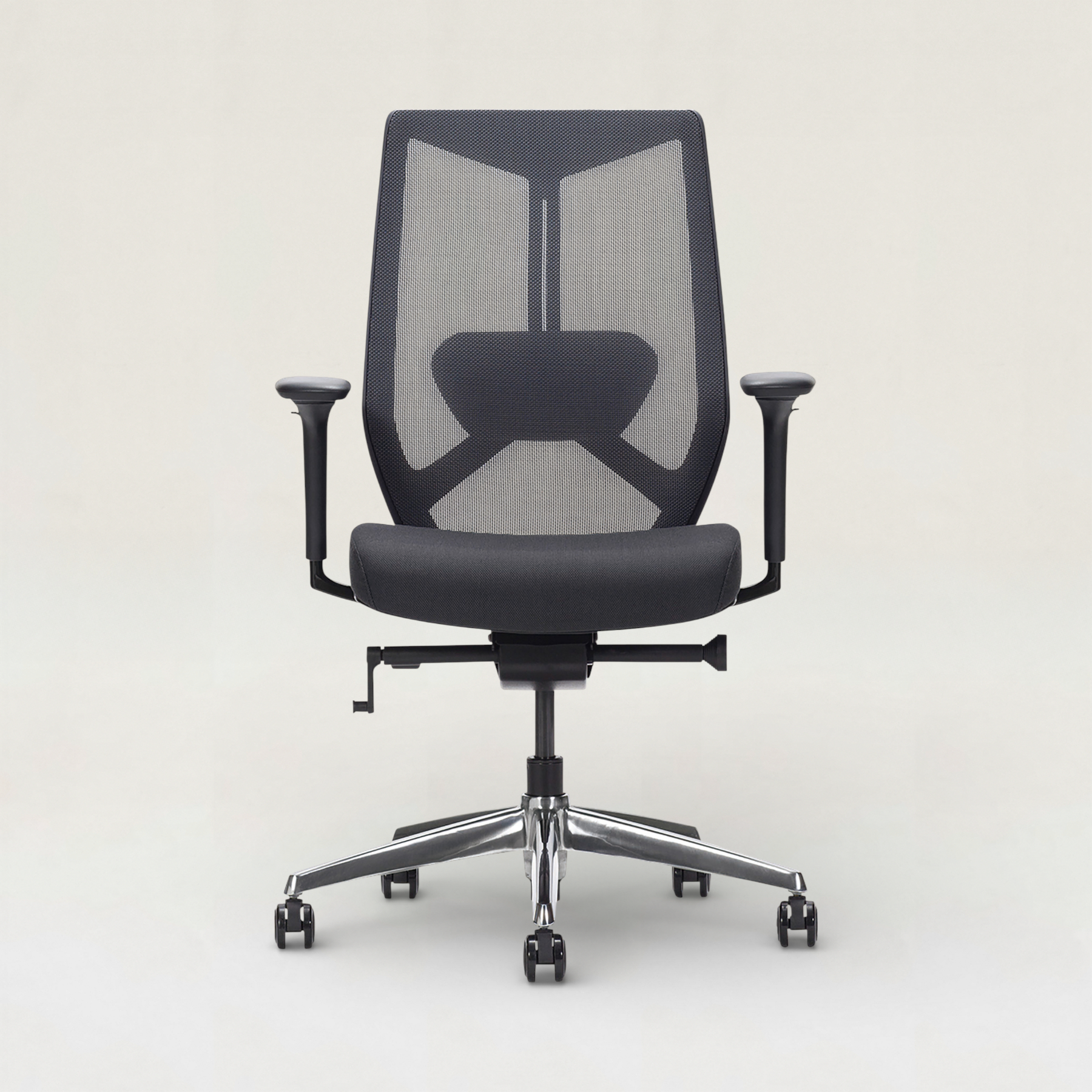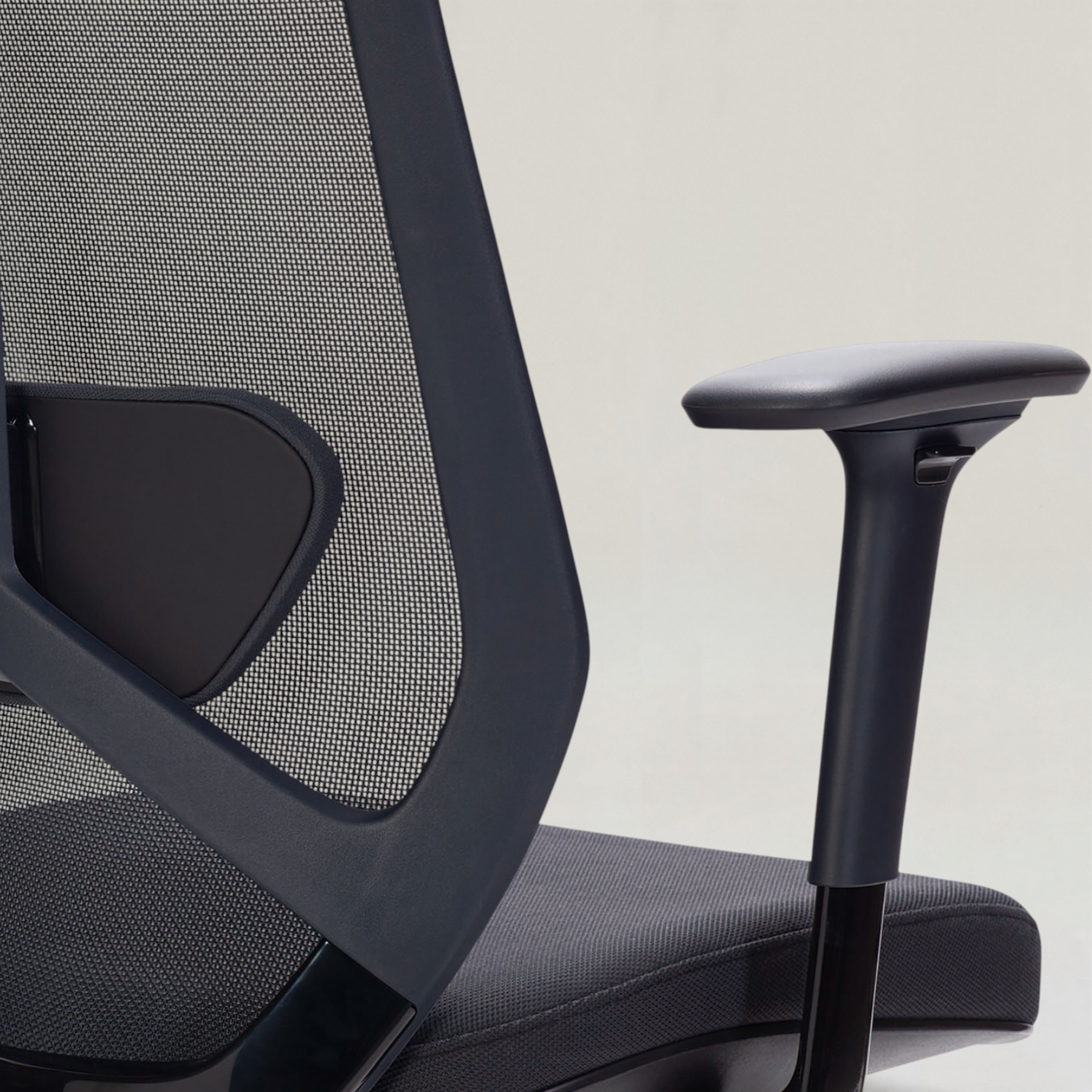 日常的に使うオフィスチェアとして、集中した時間にもリラックスした作業にも寄り添う存在。シャープさの中にやわらかさを感じるフォルムが、無機質になりがちなデスク周りに程よい余白を生み出します。ホームオフィスはもちろん、共有スペースにも取り入れやすい一脚です。