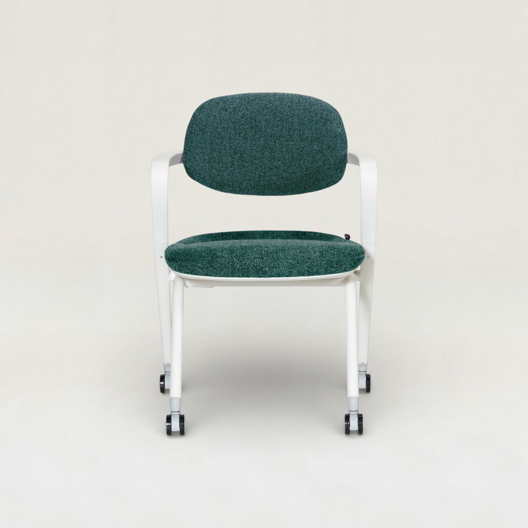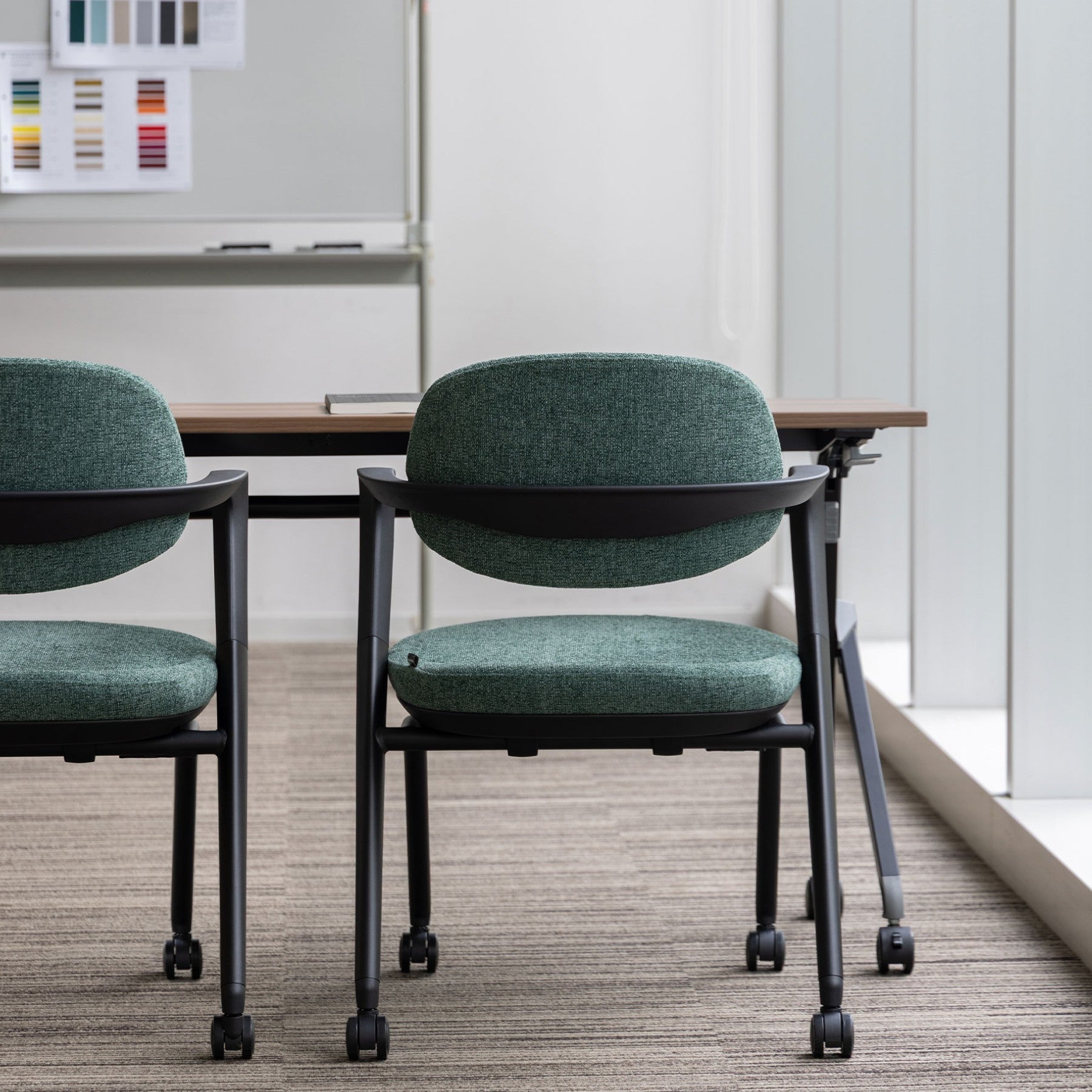 やわらかなファブリックとすっきりとしたシルエットが特徴のミーティングチェア。
