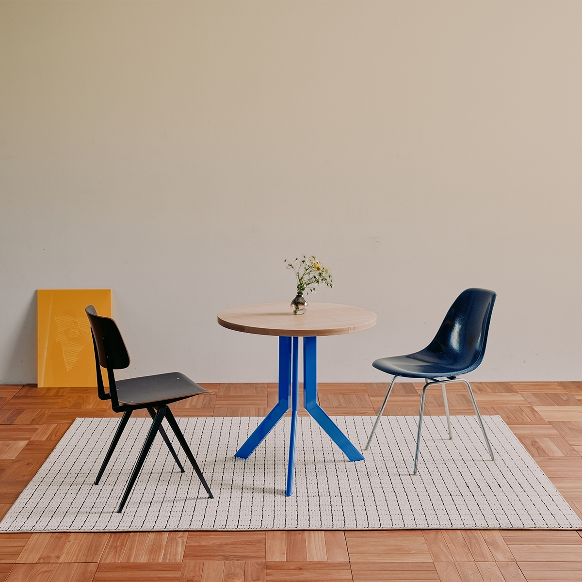 三方向に伸びる脚が軽やかな印象。粉体塗装の質感が空間にモダンさを添えます。