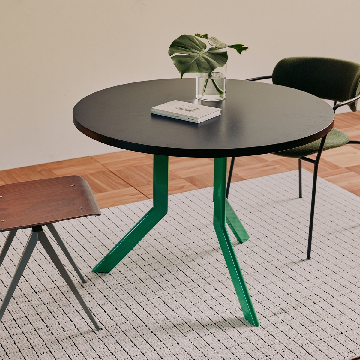 天板と脚のカラーを自由に組み合わせ可能。主役にもアクセントにもなる一台に。