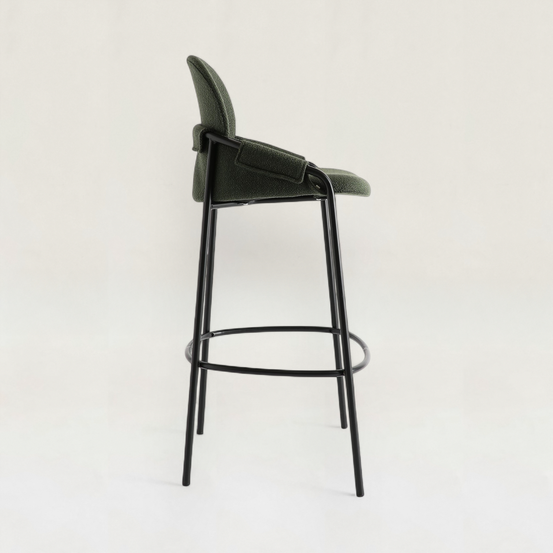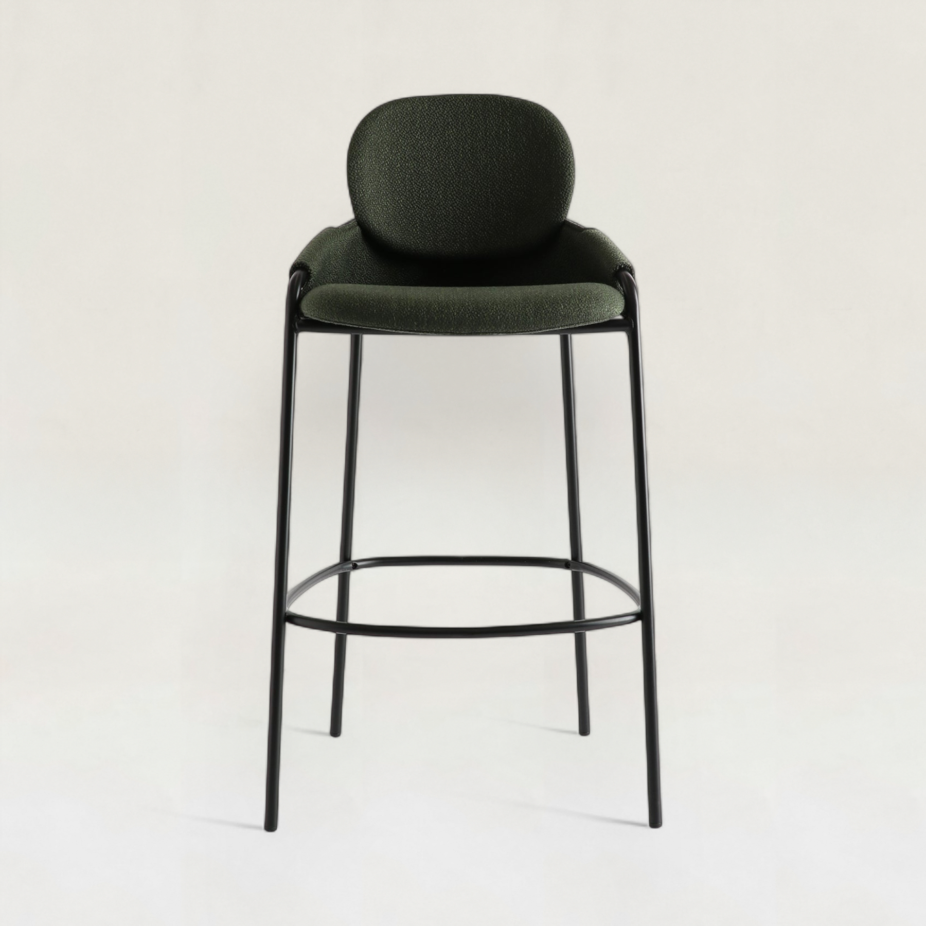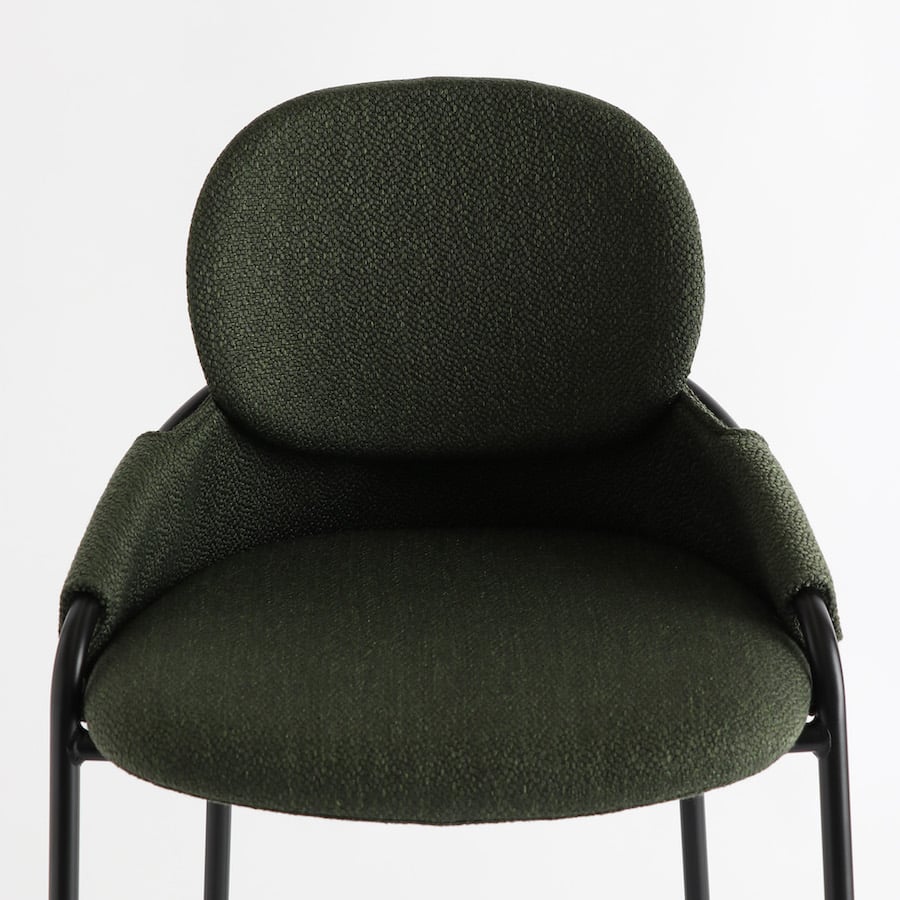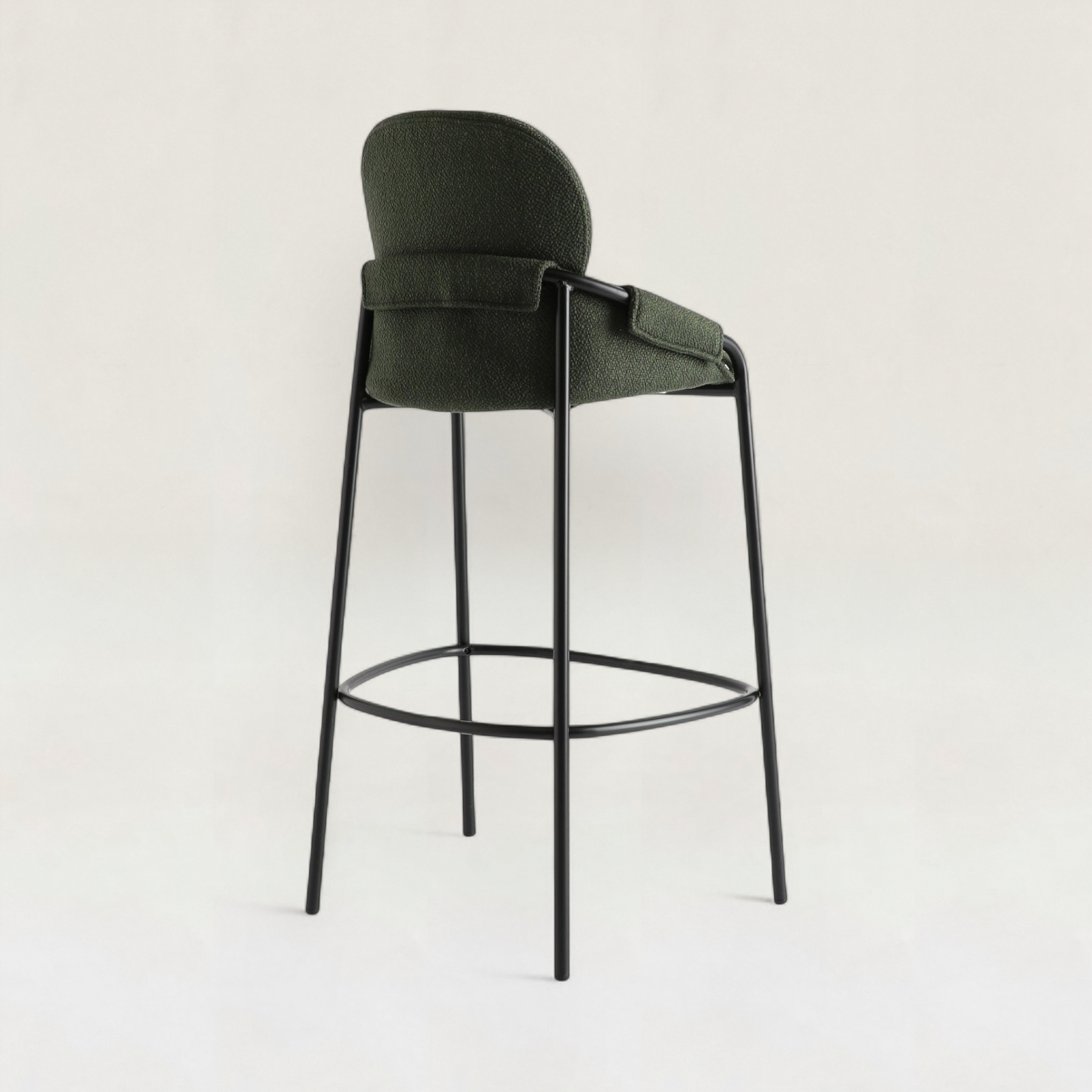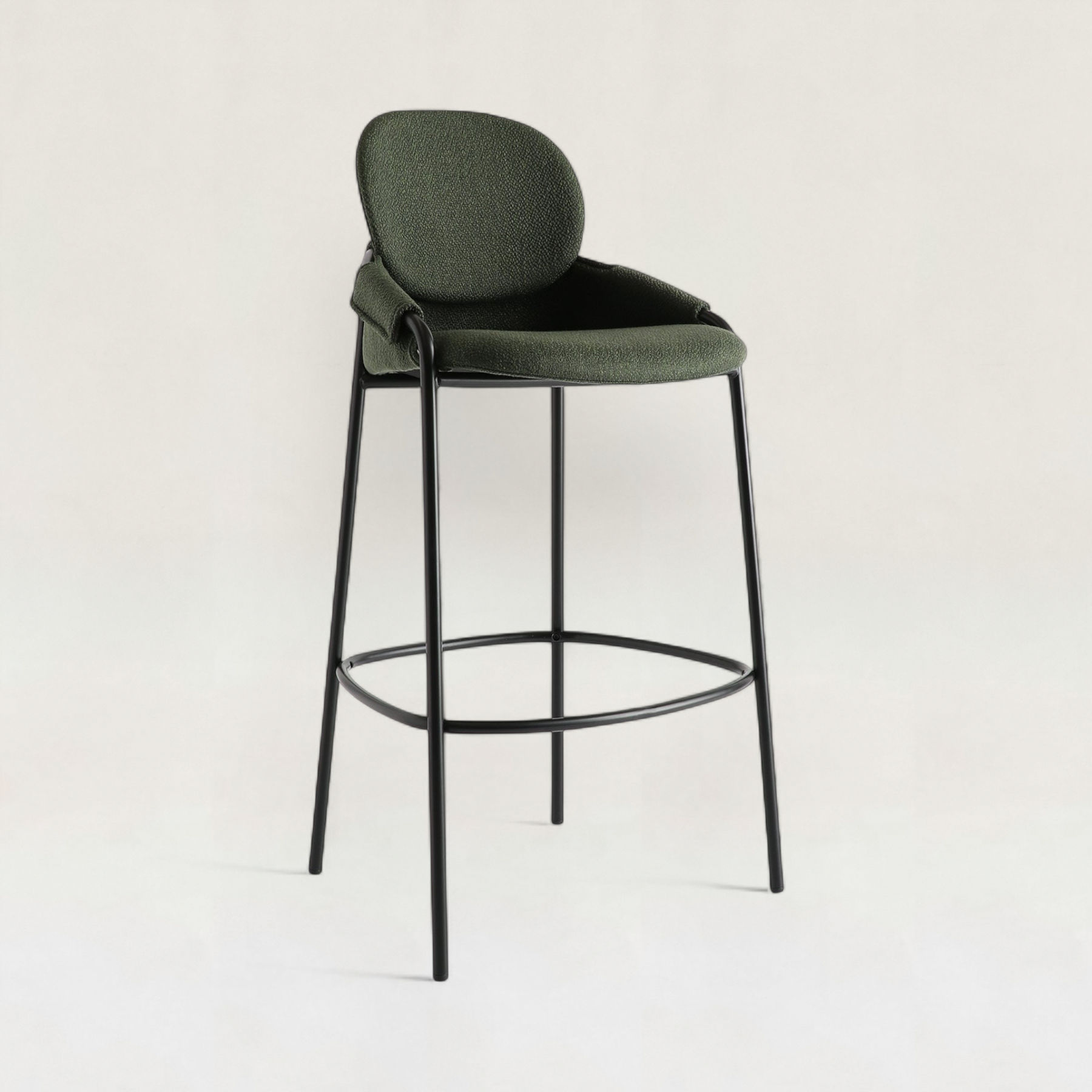 ハイチェアに珍しい、カバーリングのファブリックがちょうどいいカジュアルさを醸し出す。
