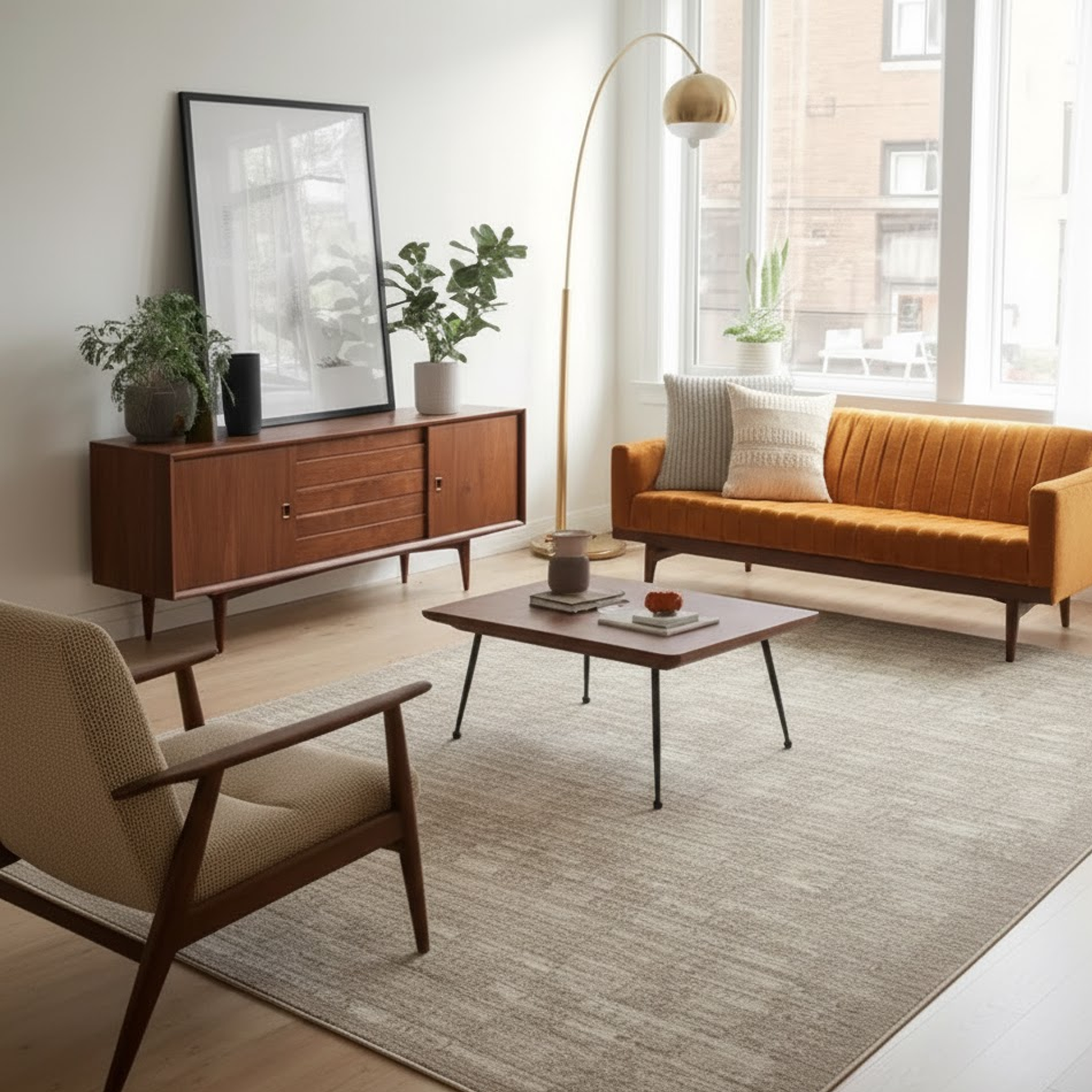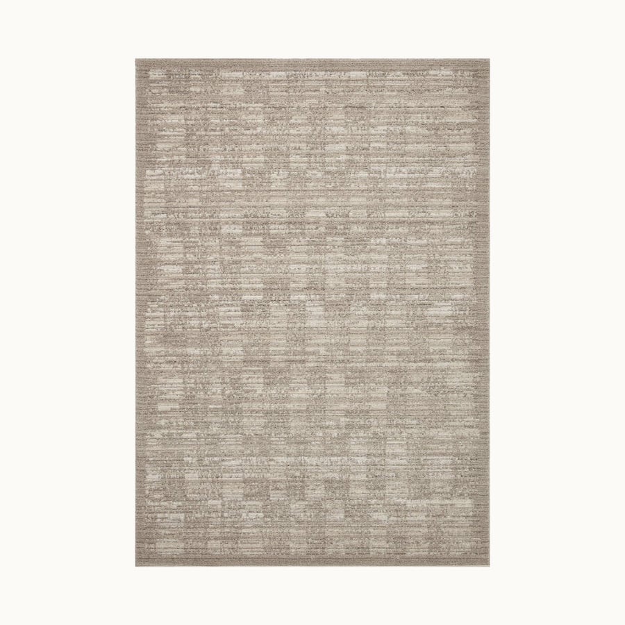 ニュートラルなストーンベージュカラーと、立体的なリブのテクスチャーが絶妙な存在感を放つシンプルモダンラグ。