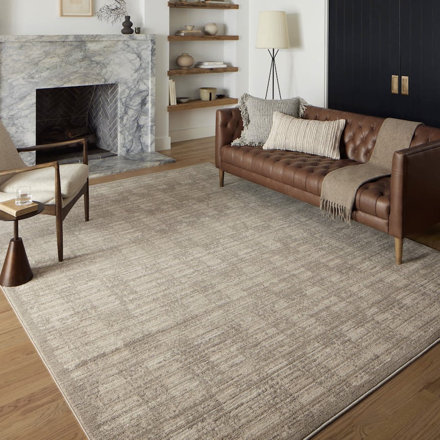 落ち着いたベージュのグラデーションが上品。まるでハンドノットラグのような凹凸が見た目に変化をつけます。