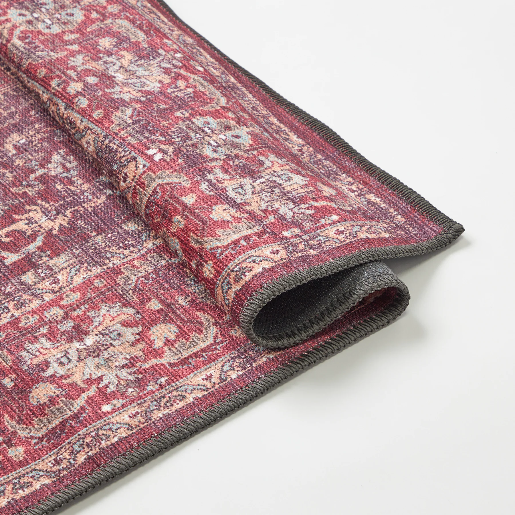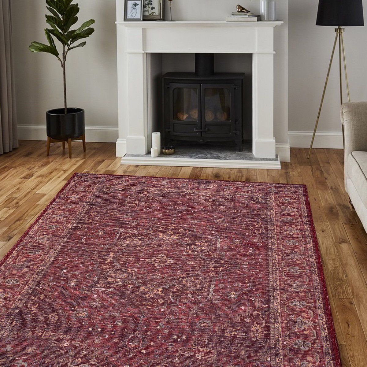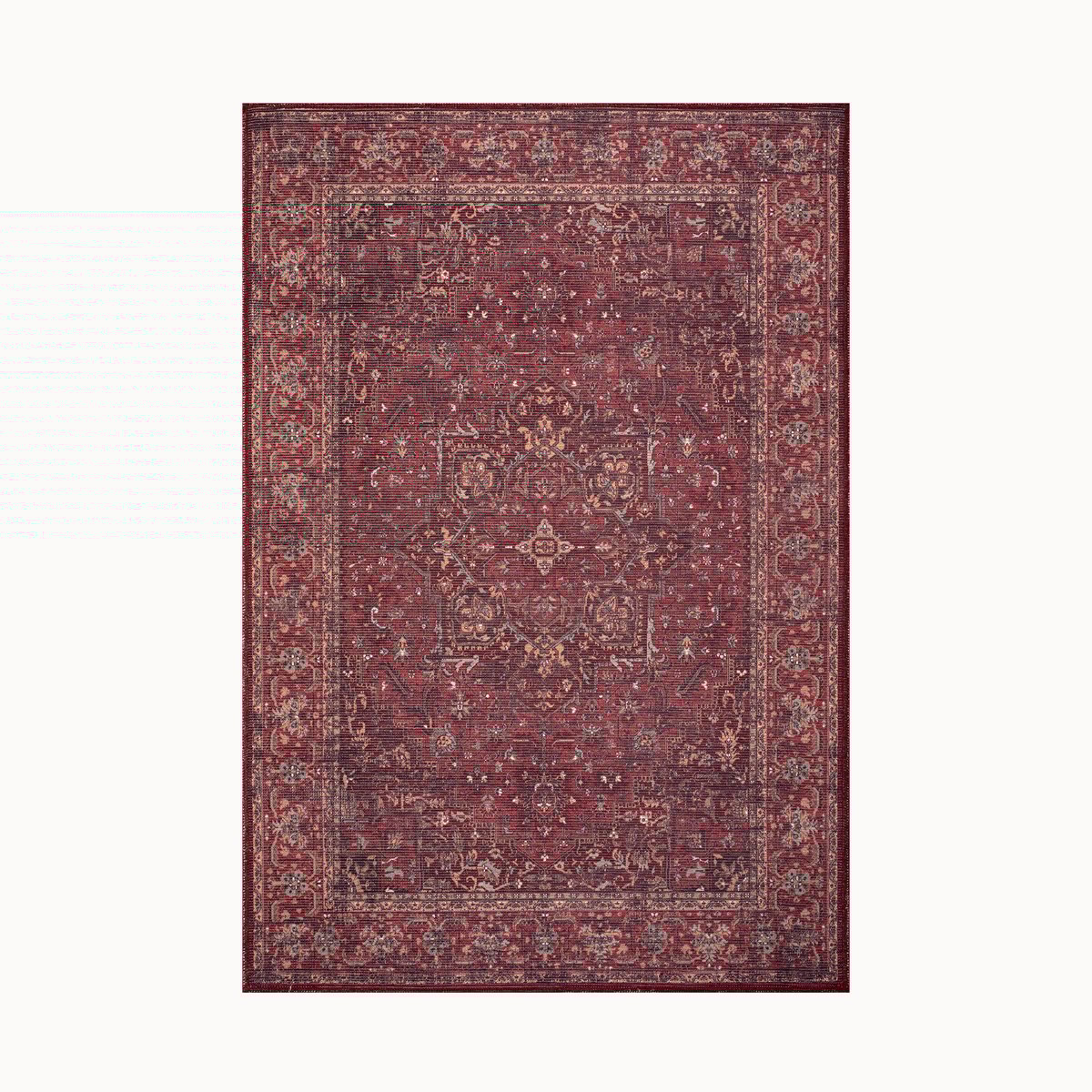 深みのあるバーガンディーカラーにメダリオンがさりげなく映える、暖色系ヴィンテージスタイルラグ Fabiana。