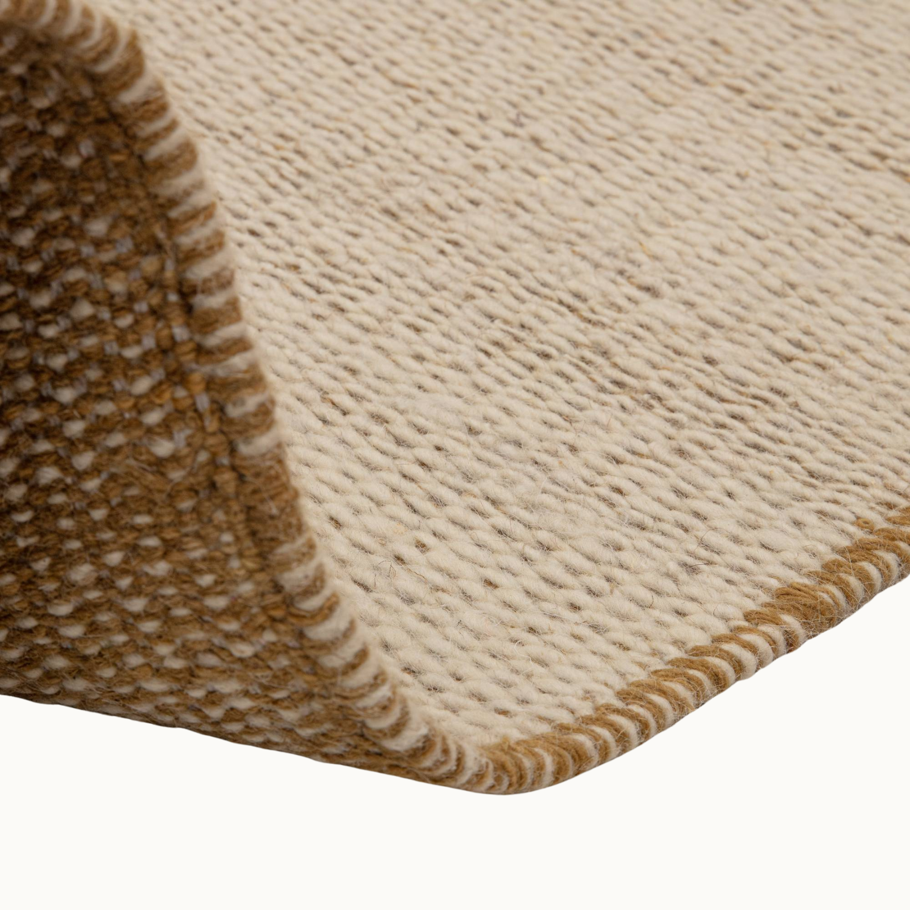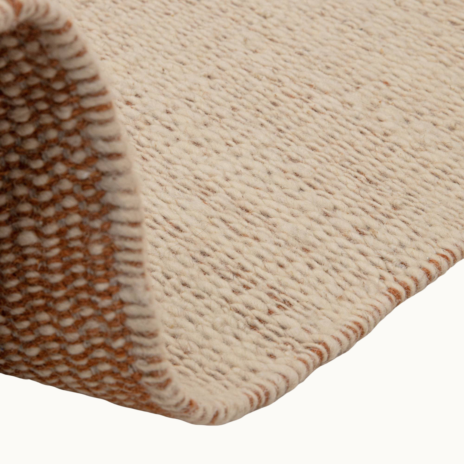素材は手紡ぎウール100%を使用し、インドで手織り製法。低めのパイル仕上げで丁寧に織り上げられています。