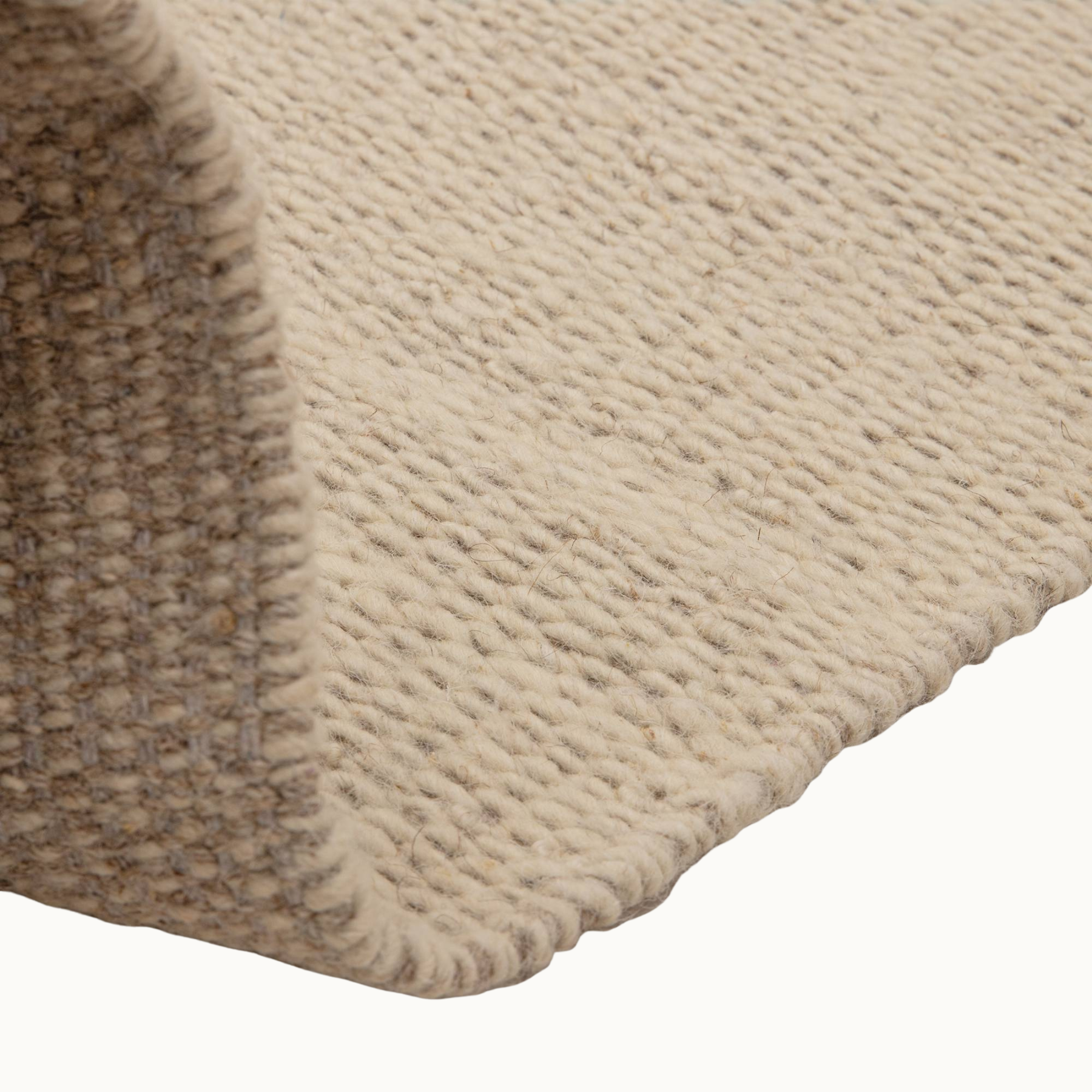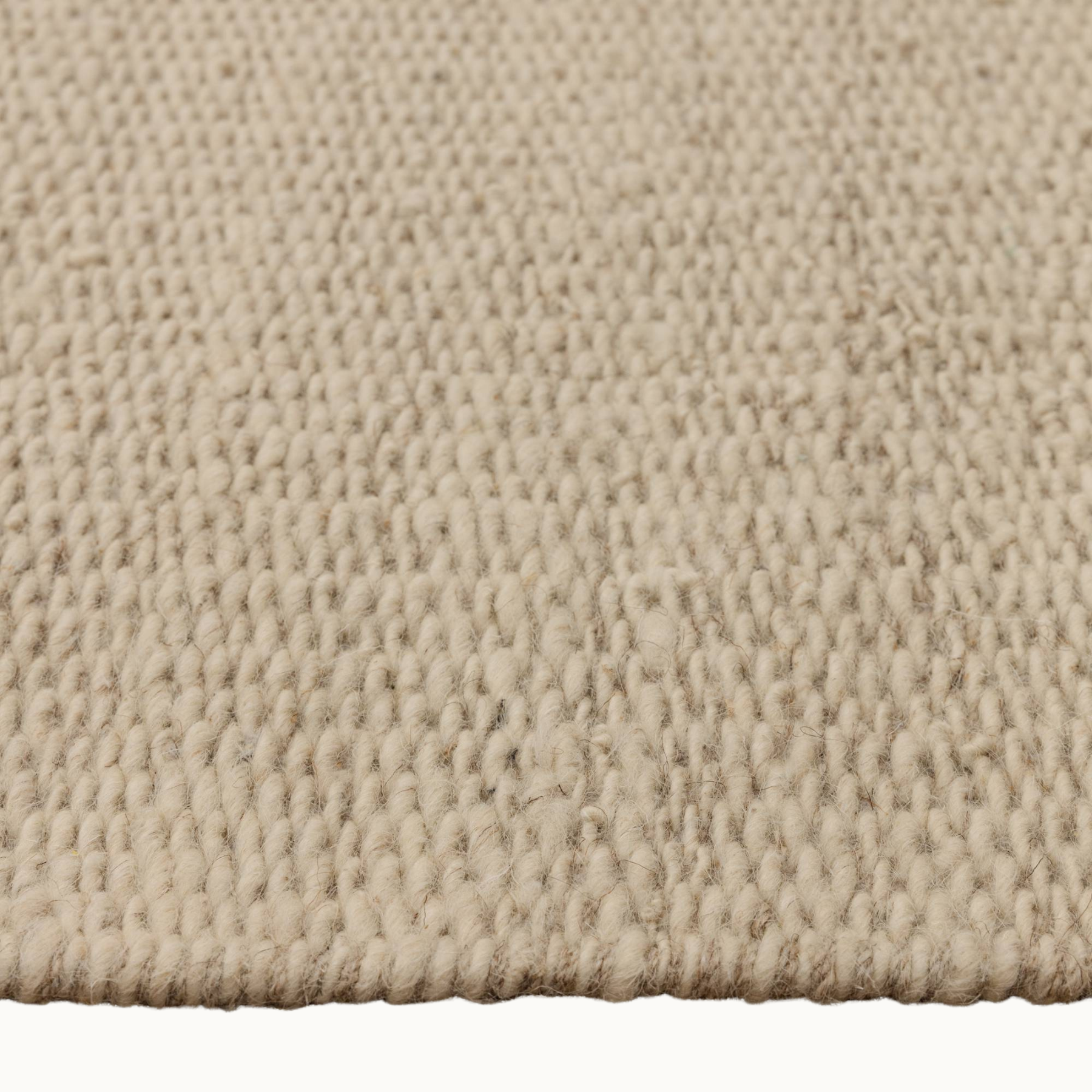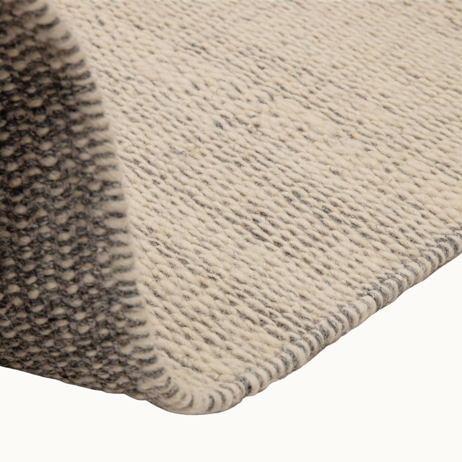 ソファ前やダイニング下など、日常に寄り添う使い勝手の良さも魅力で、ウール素材特有の調湿性や足あたりのやさしさも感じられます。色味を絞ったデザインゆえに、和洋いずれの家具とも調和し、暮らしに溶け込む一枚です。
