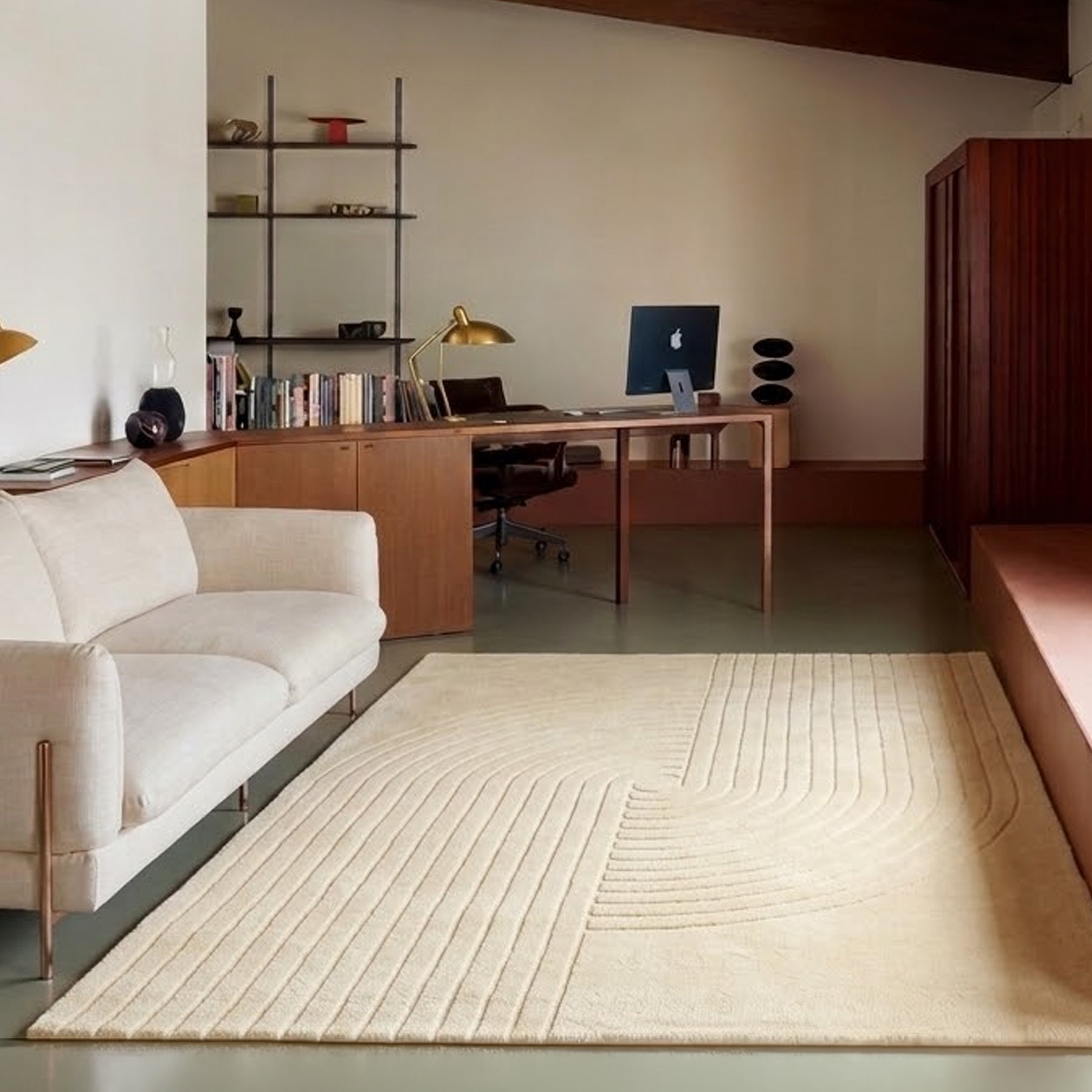 やさしい質感と印象的なラインが暮らしに静かな個性を添え、リビングやベッドルームを心地よいくつろぎの場所へと導いてくれる一枚です。
