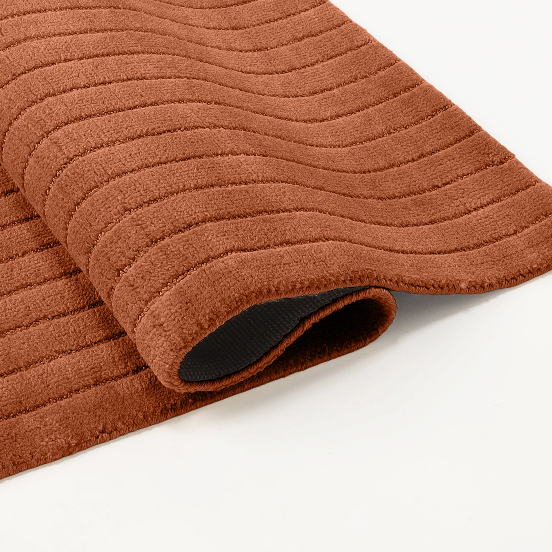 素材はマイクロファイバーポリエステル。極細の繊維を起毛させて、極上の触り心地のラグをつくりました。なめらかで心地よい肌ざわりが広がり、思わず素足で過ごしたくなる快適さ。