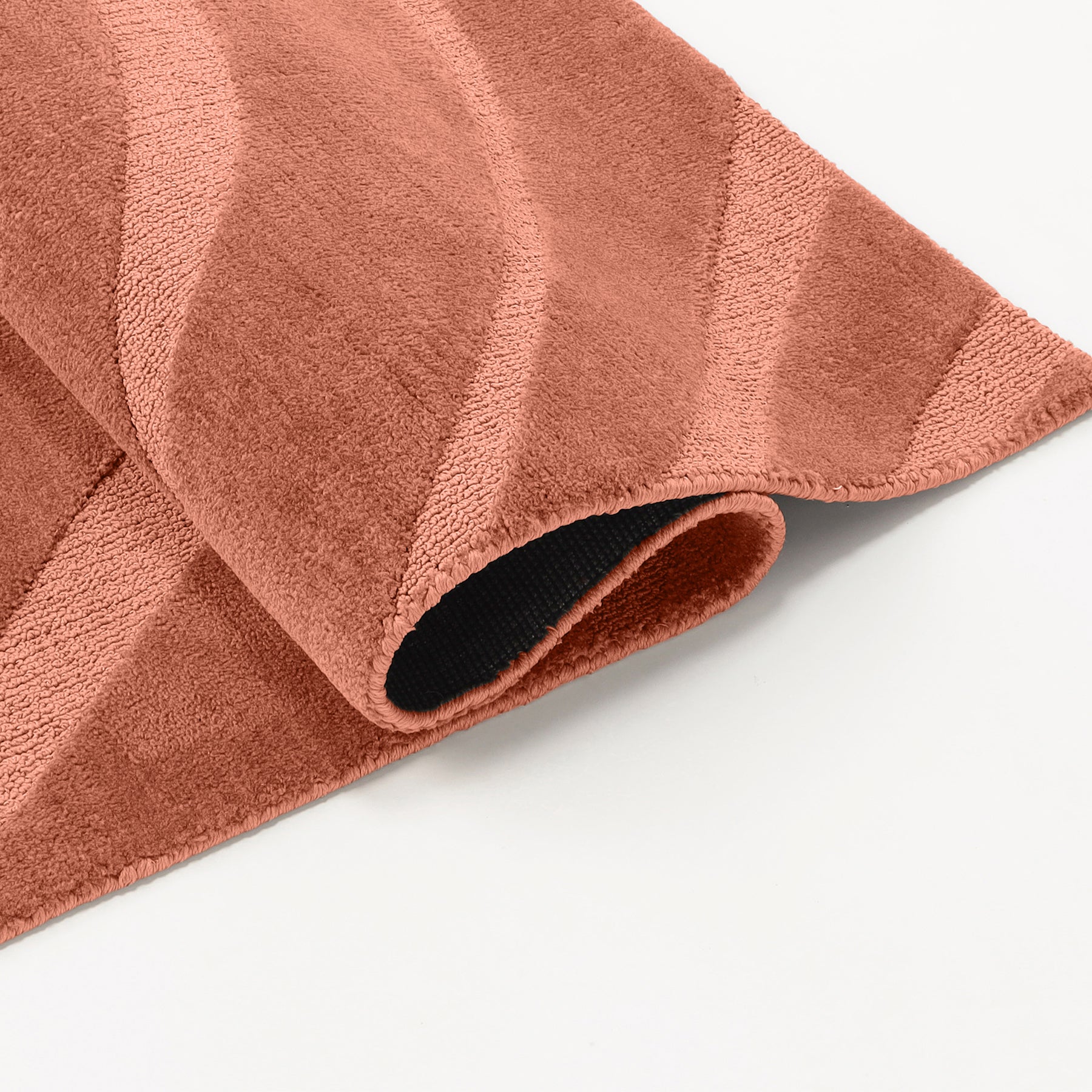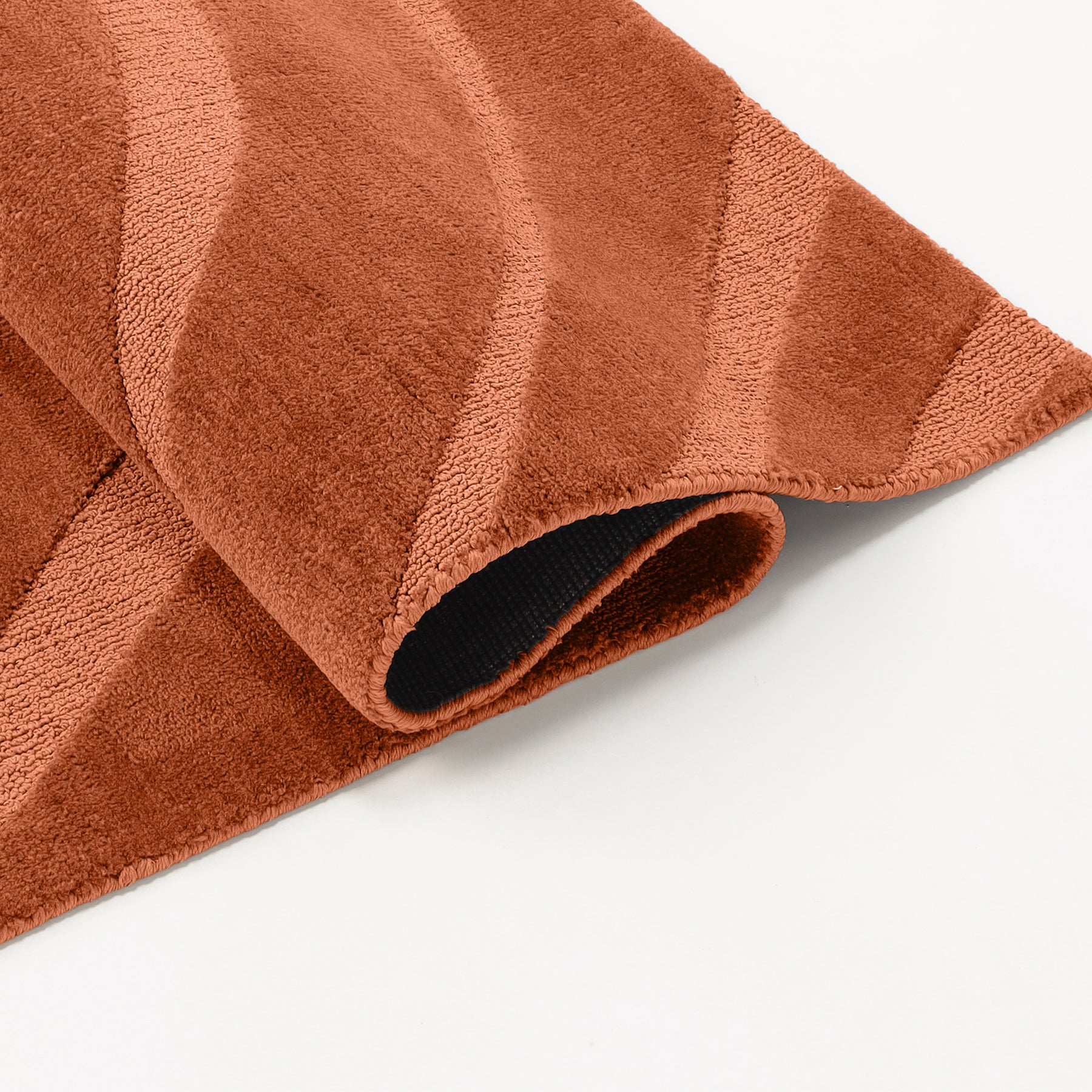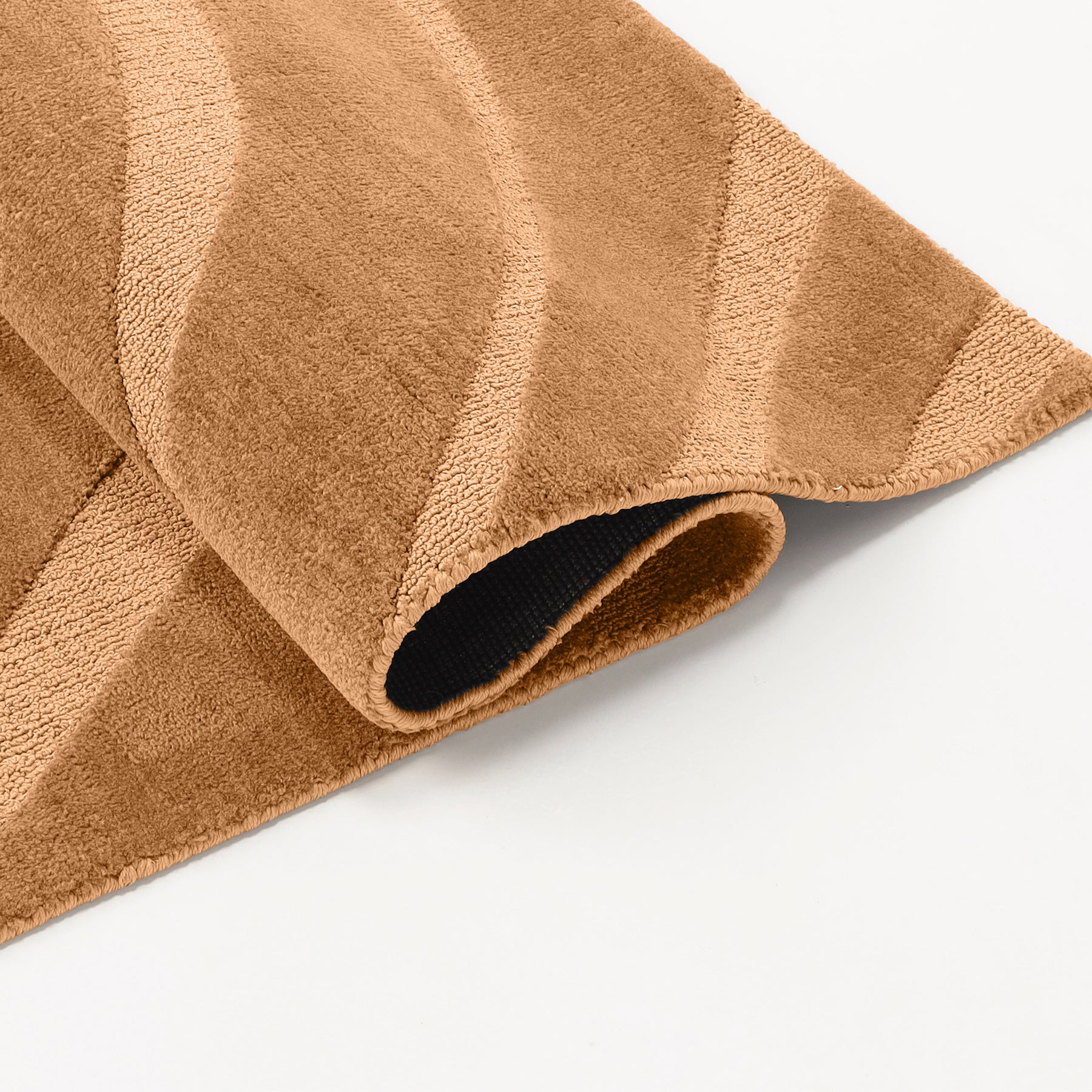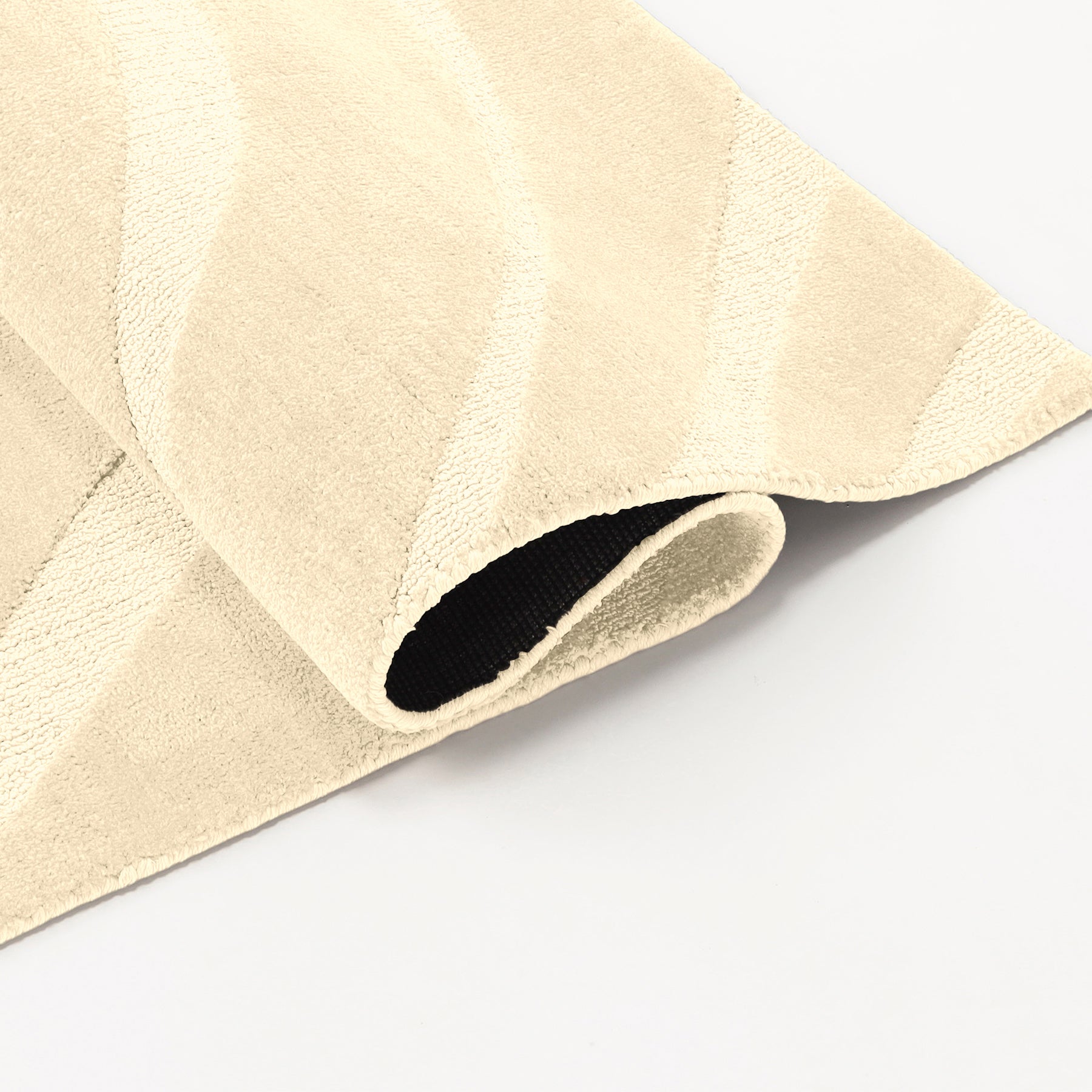 素材はマイクロファイバーポリエステル。極細の繊維を起毛させて、極上の触り心地のラグをつくりました。なめらかで心地よい肌ざわりが広がり、思わず素足で過ごしたくなる快適さ。防汚性があり日常使いもしやすく、床暖房にも対応しているため季節を問わず快適にお使いいただけます。