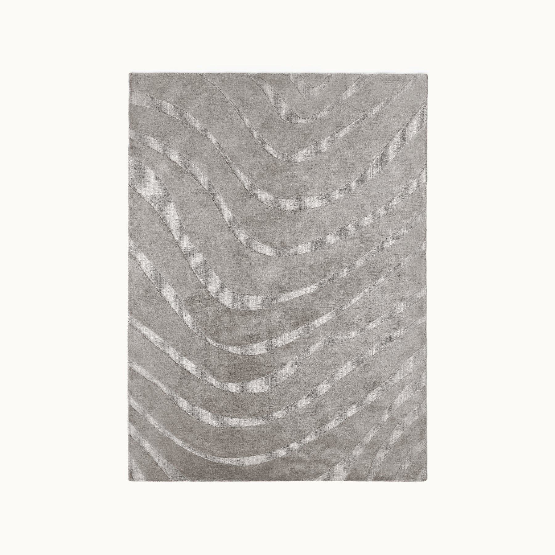 穏やかな波紋のようなラインが広がるミニマルデザインのRipple ラグ。