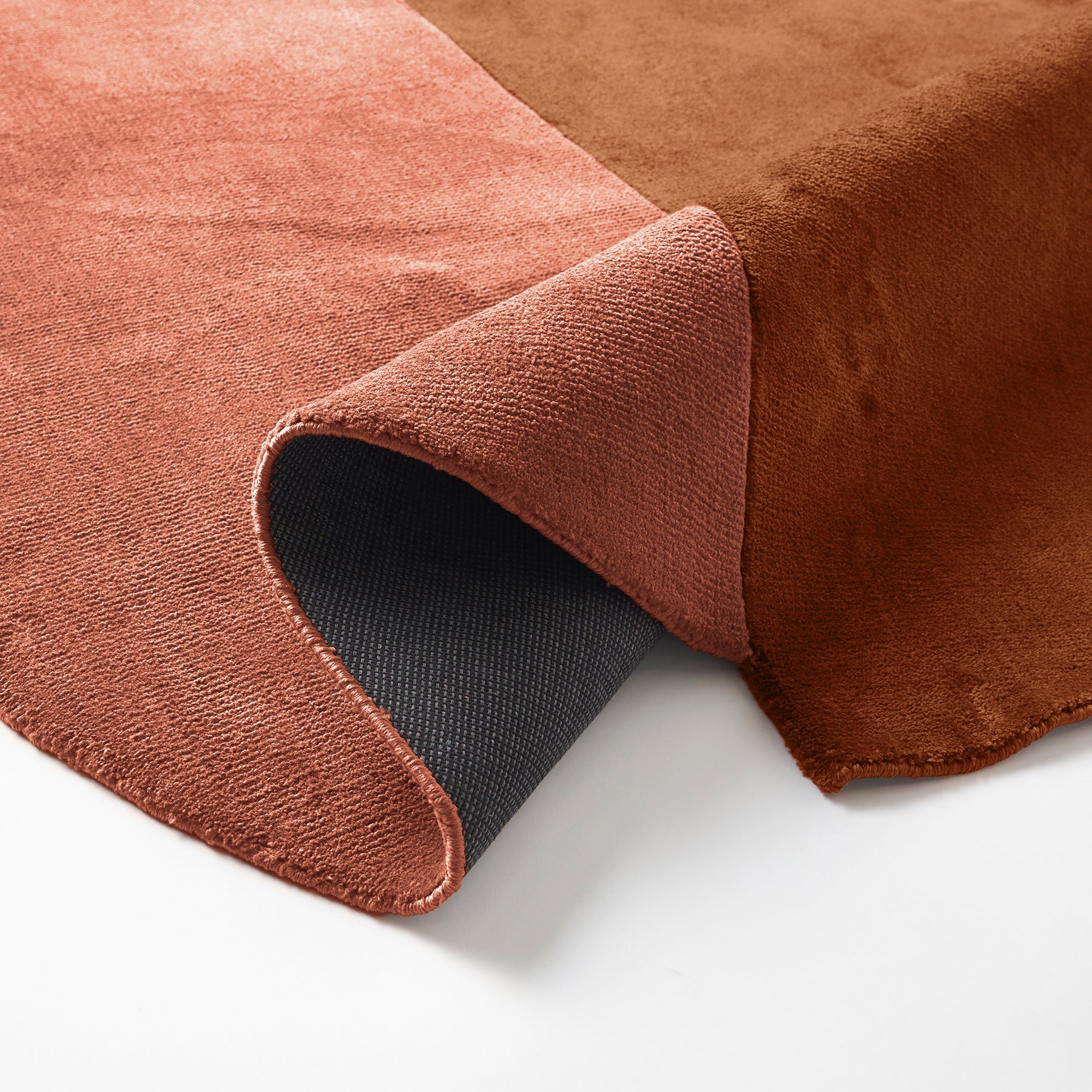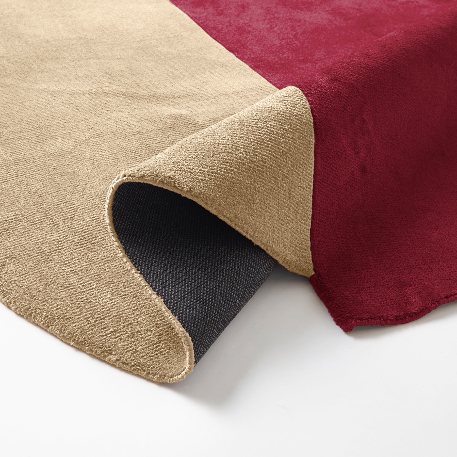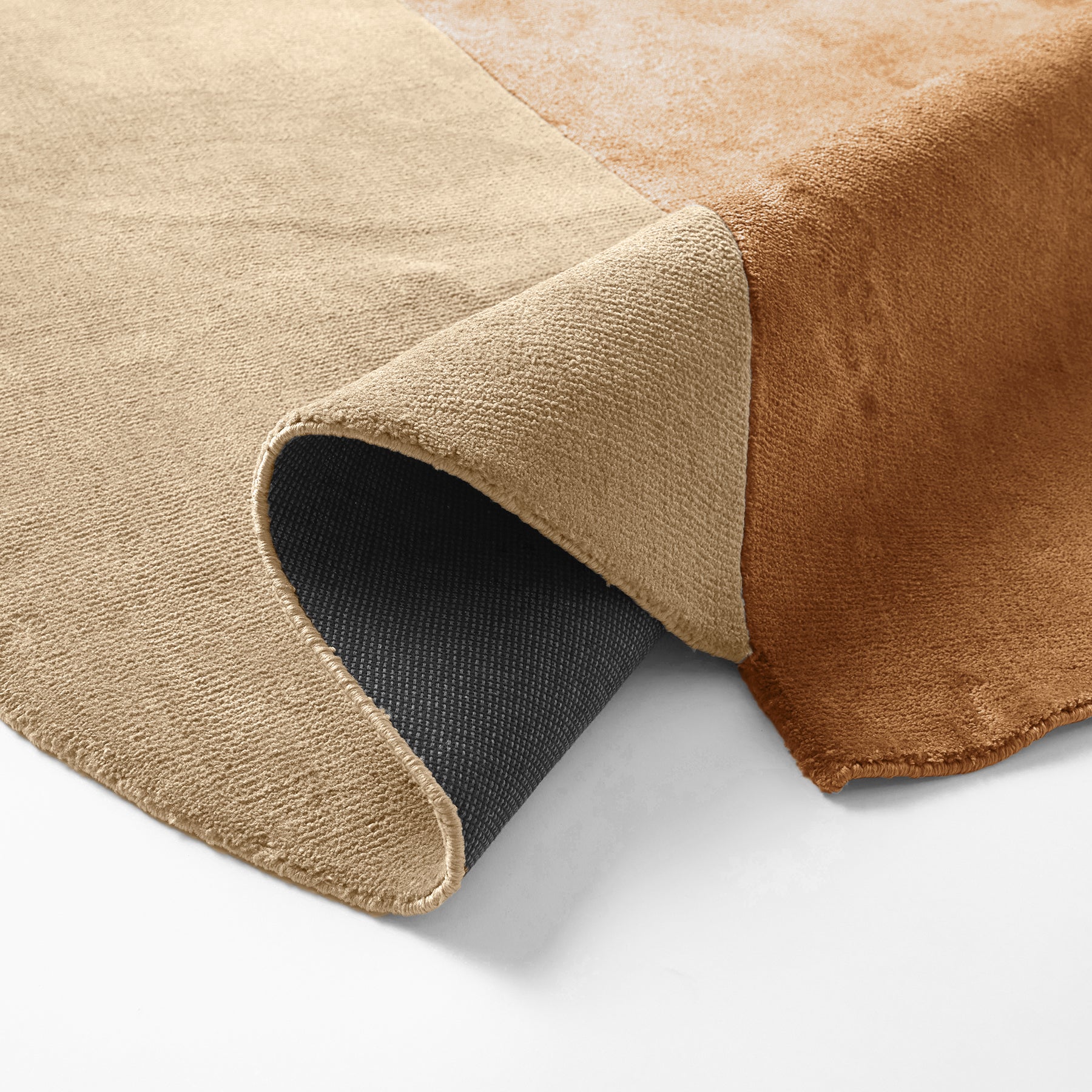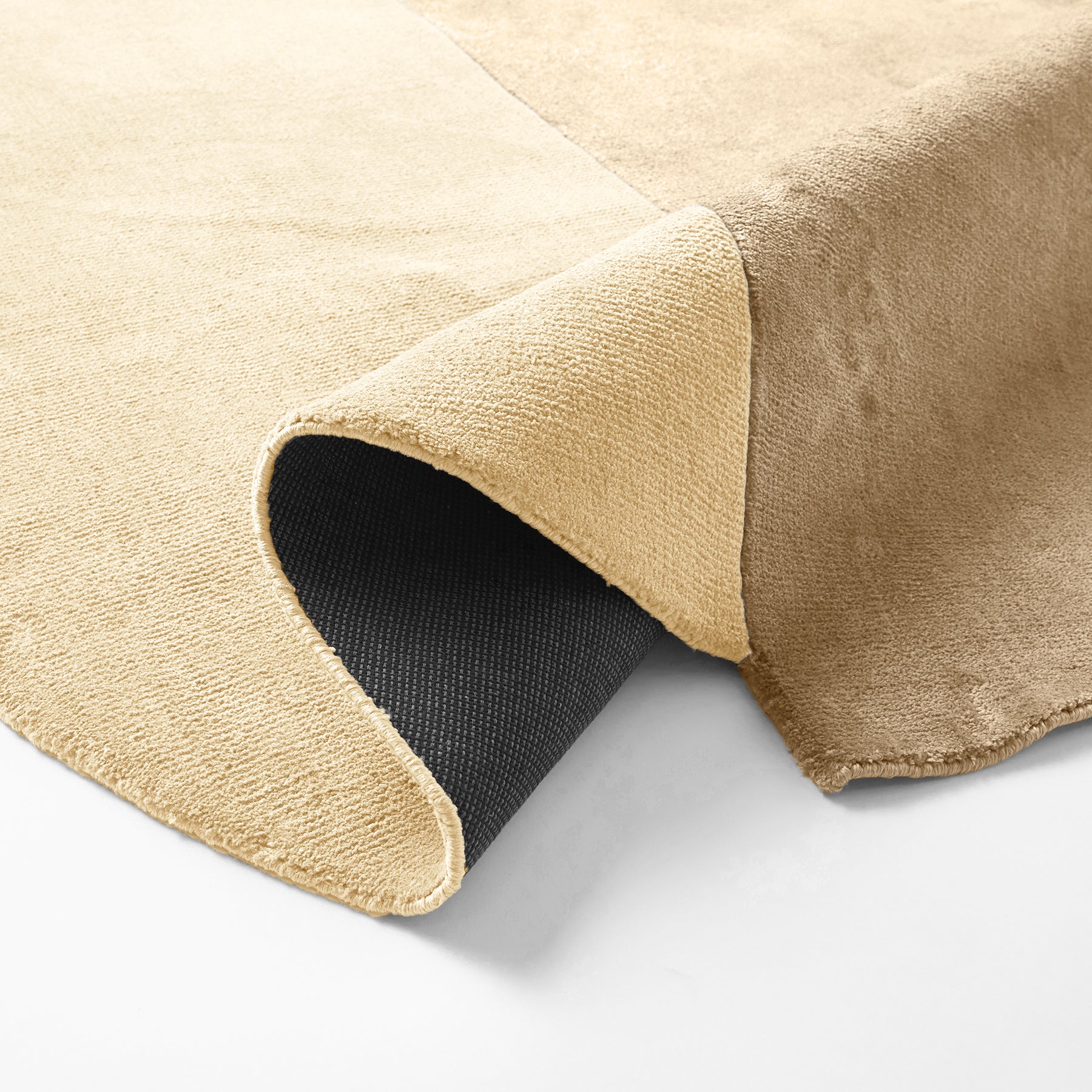 素材はマイクロファイバーポリエステル。極細の繊維を起毛させて、極上の触り心地のラグをつくりました。なめらかで心地よい肌ざわりが広がり、思わず素足で過ごしたくなる快適さ。防汚性があり日常使いもしやすく、床暖房にも対応しているため季節を問わず快適にお使いいただけます。