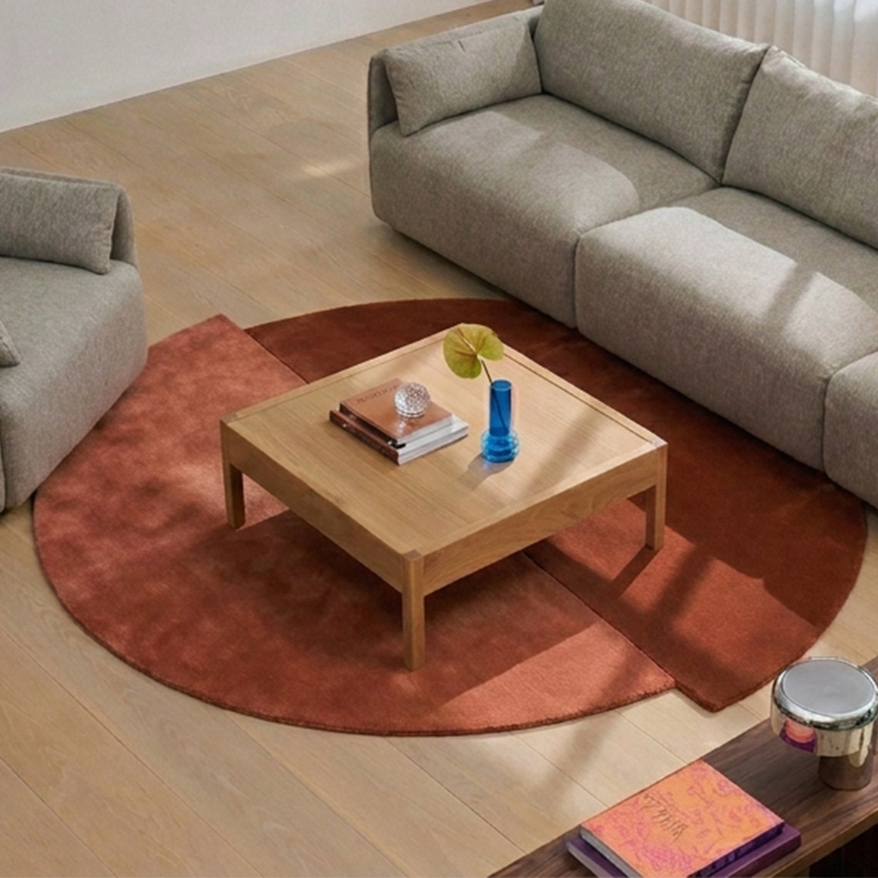 円形をベースにしたシンプルな構成に、異なるカラーを組み合わせたデザインが空間に穏やかなアクセントを添えます。主張しすぎない配色がインテリアにすっと馴染み、北欧テイストやモダンなリビングにも心地よく調和。