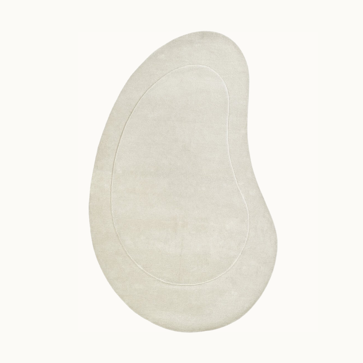 ぽってりとしたユニークな形が愛らしい、アイボリー色のウール100%ラグ。まるでモダンなアート作品のよう。