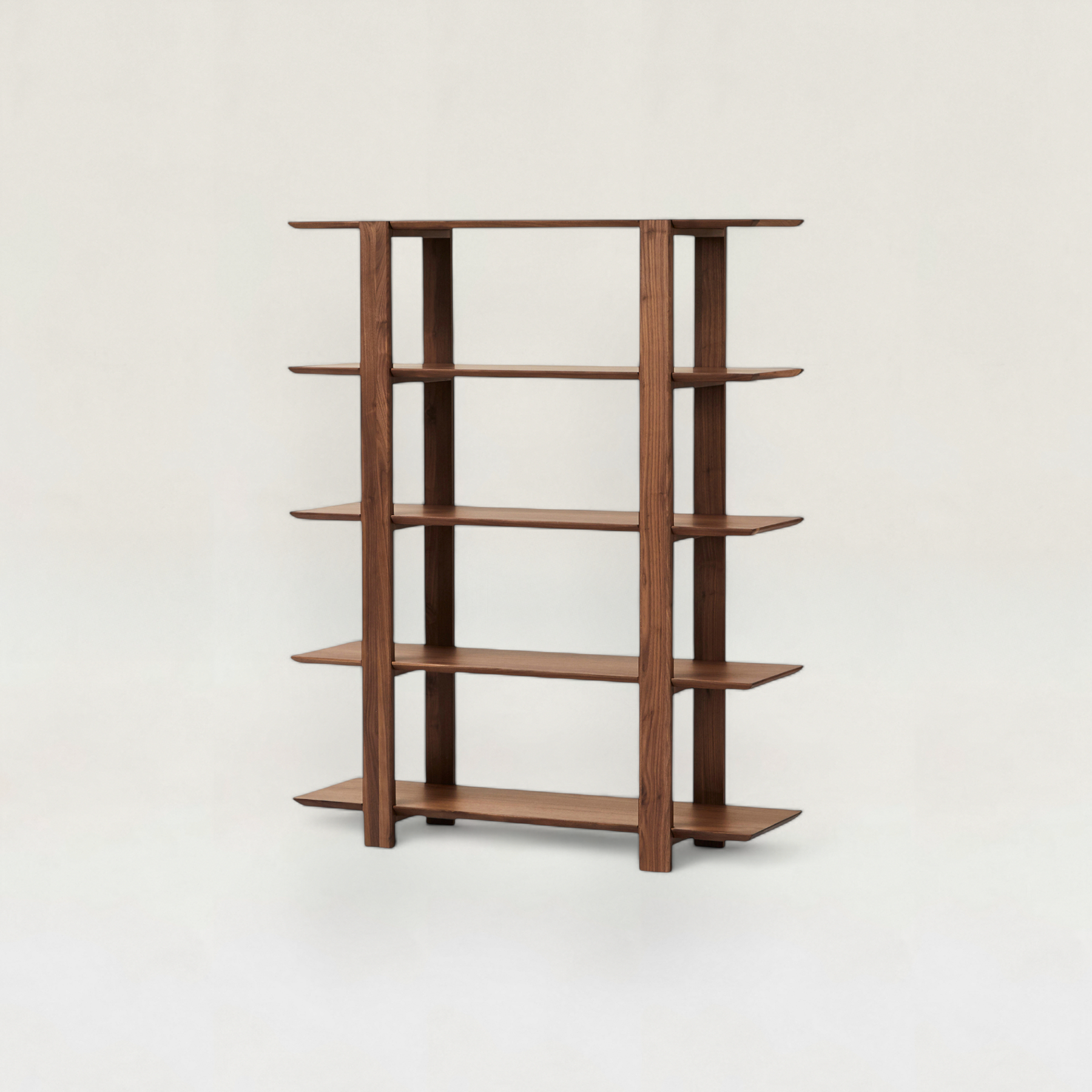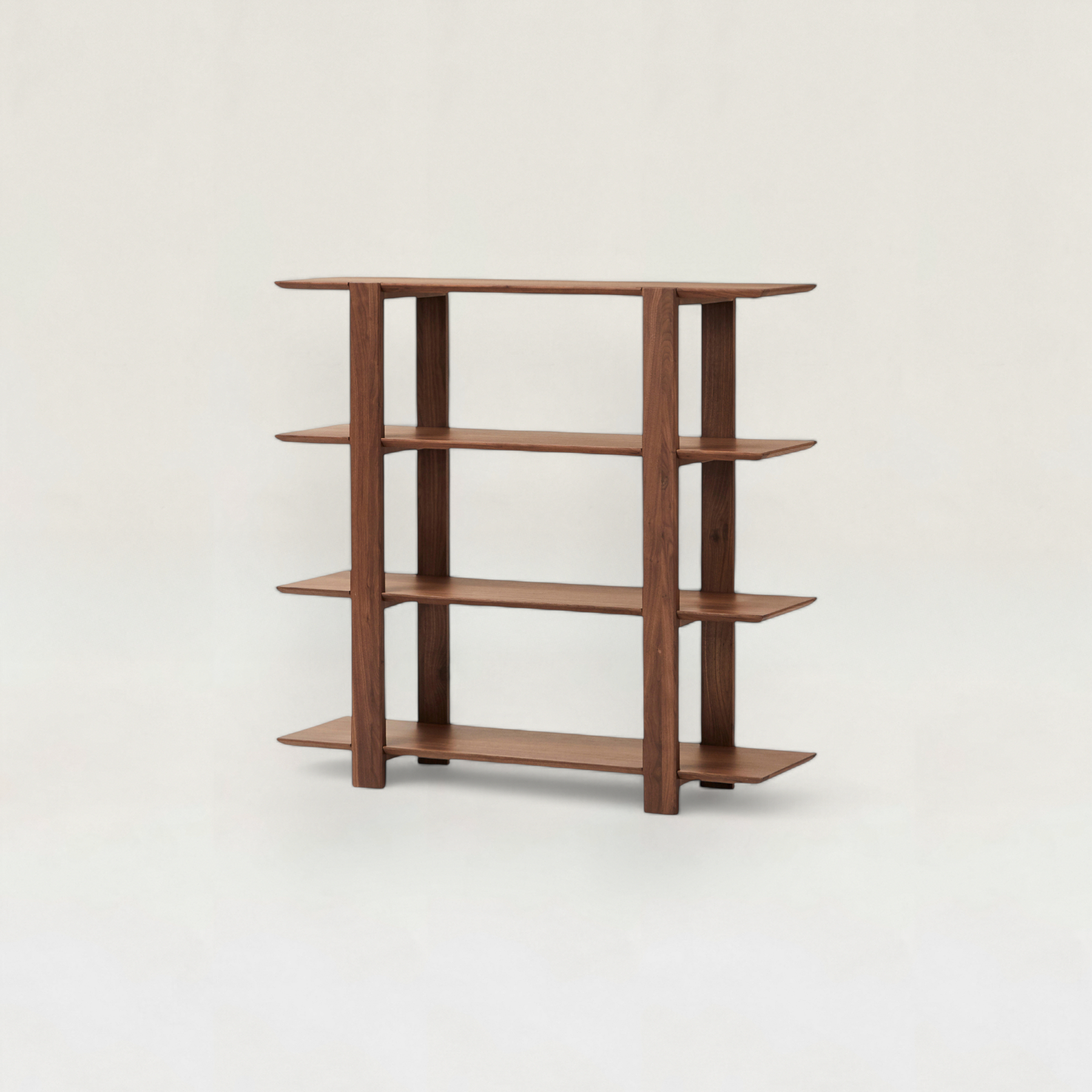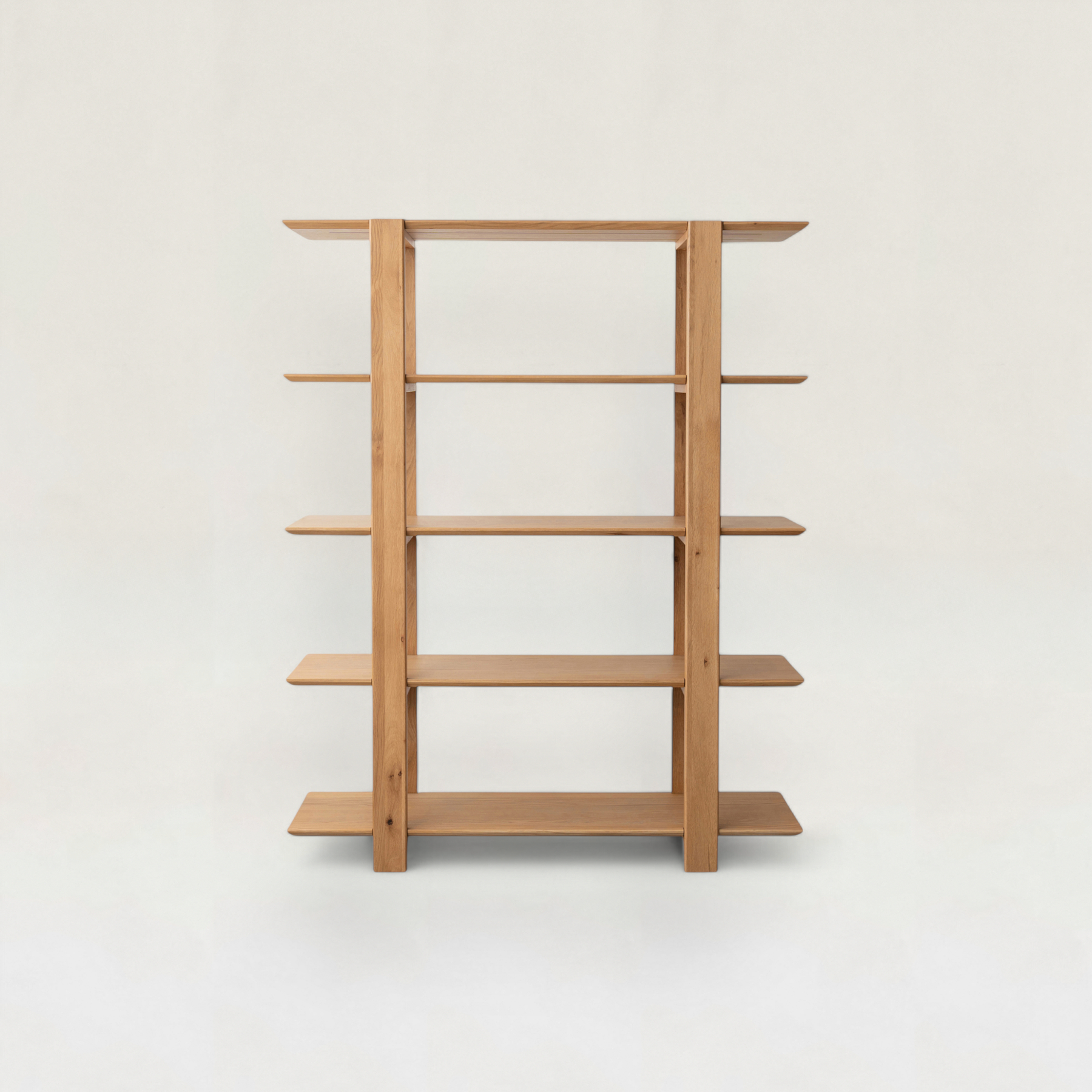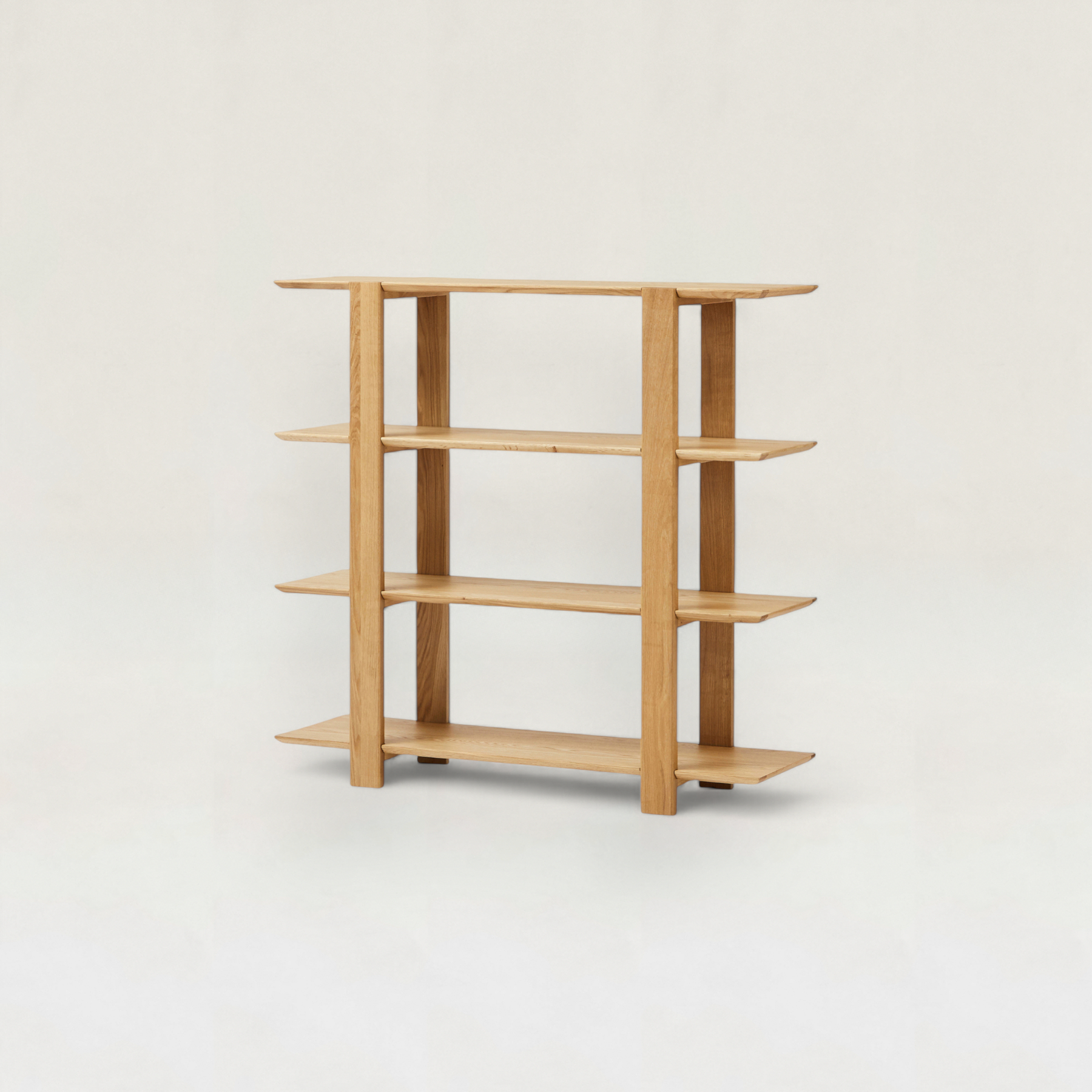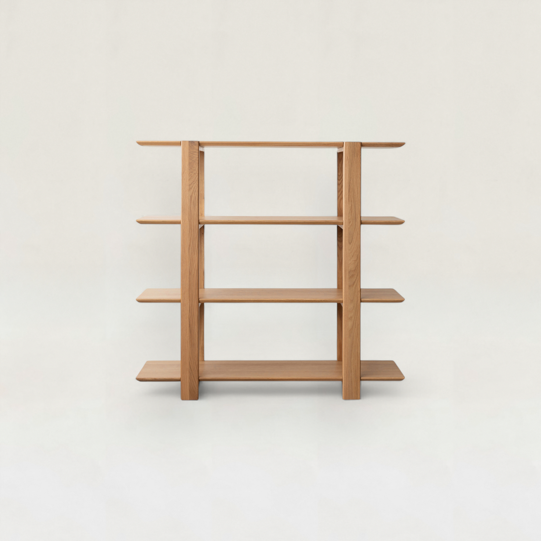 直線的なフォルムと天然木の表情が美しいシェルフです。軽やかなデザインなので圧迫感がなく、収納棚としてはもちろん、リビングの間仕切りや飾り棚としても活躍します。