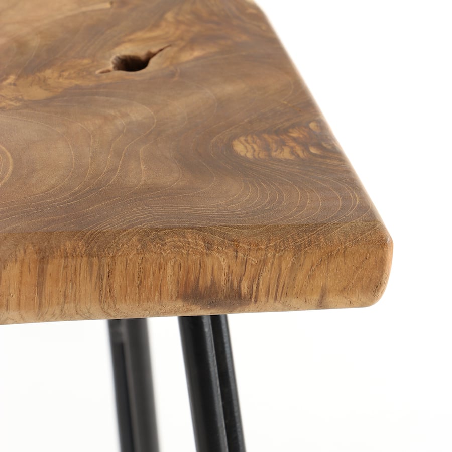 無垢のチーク材の柔らかな素材感と、程良く重厚感のあるブラック脚が絶妙な組合せ。